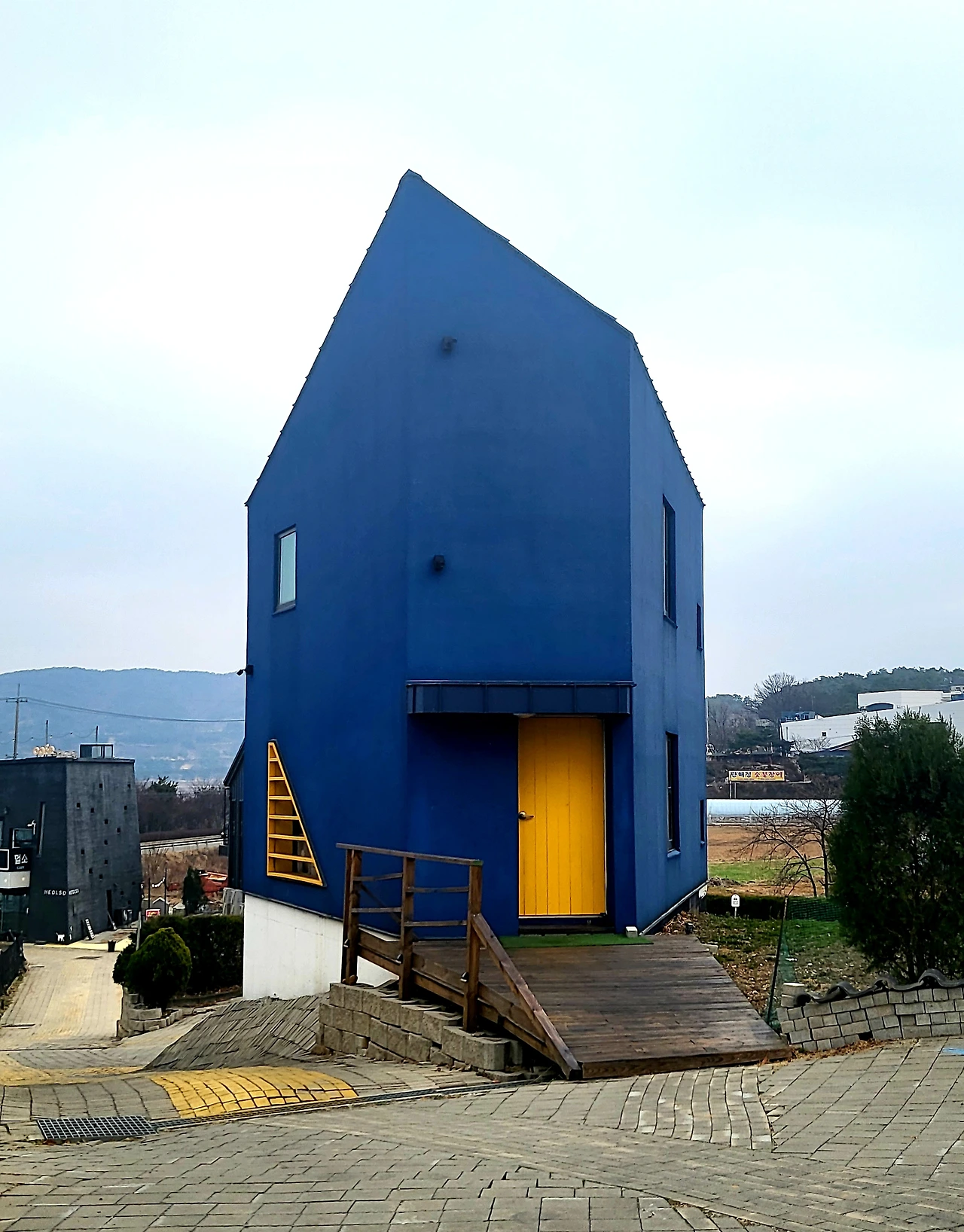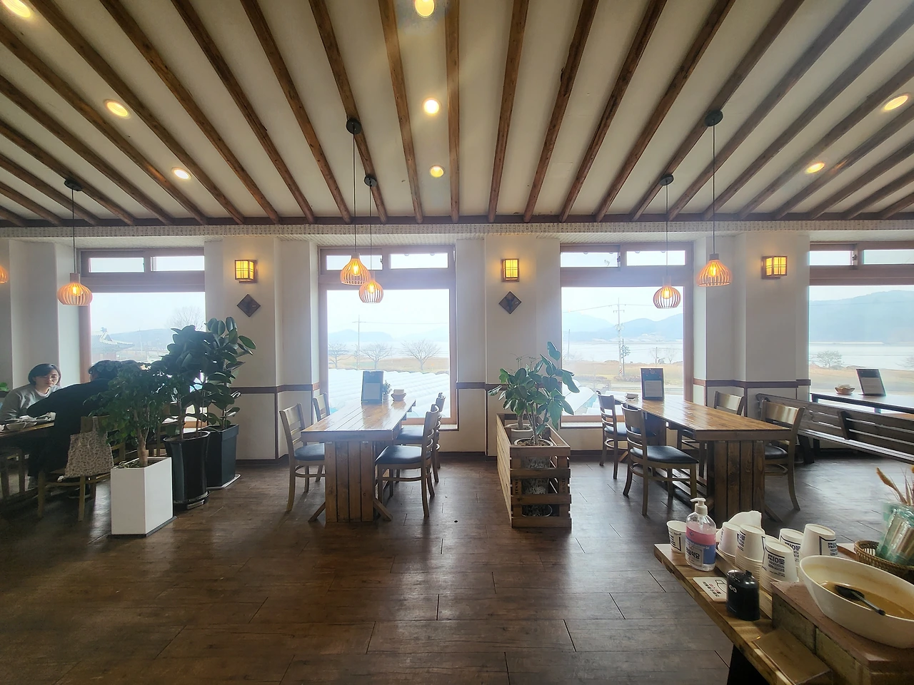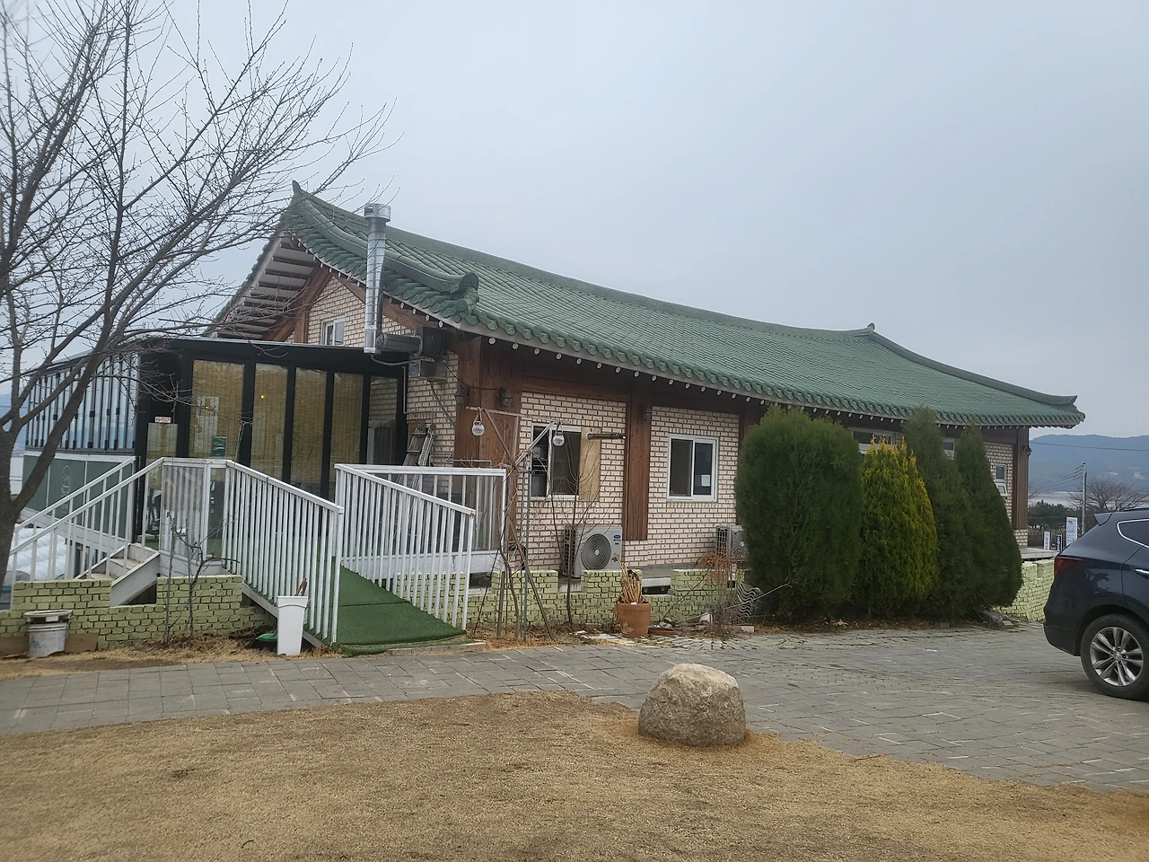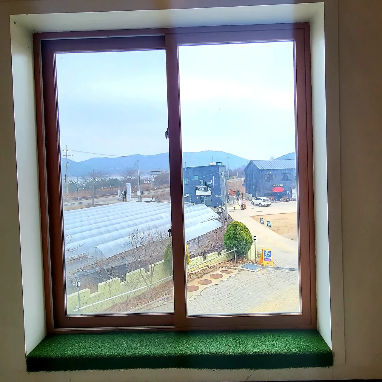 맛 소문, 뷰 소문,친절 소문이 자자한 데다 반려견 동반도 가능하다니 내가 바라던 최적의 장소였다. 마침 은정 씨와 어딜 갈까 탐색하던 차였기에 바로 실행에 옮겼다. 먼저 도착한 나는 2층으로 오르는 계단 중간쯤 나있는 통창으로 시선이 꽂혔고, 창문 너머로 보이는 목가적 풍경에 마음을 빼앗겨버렸다.