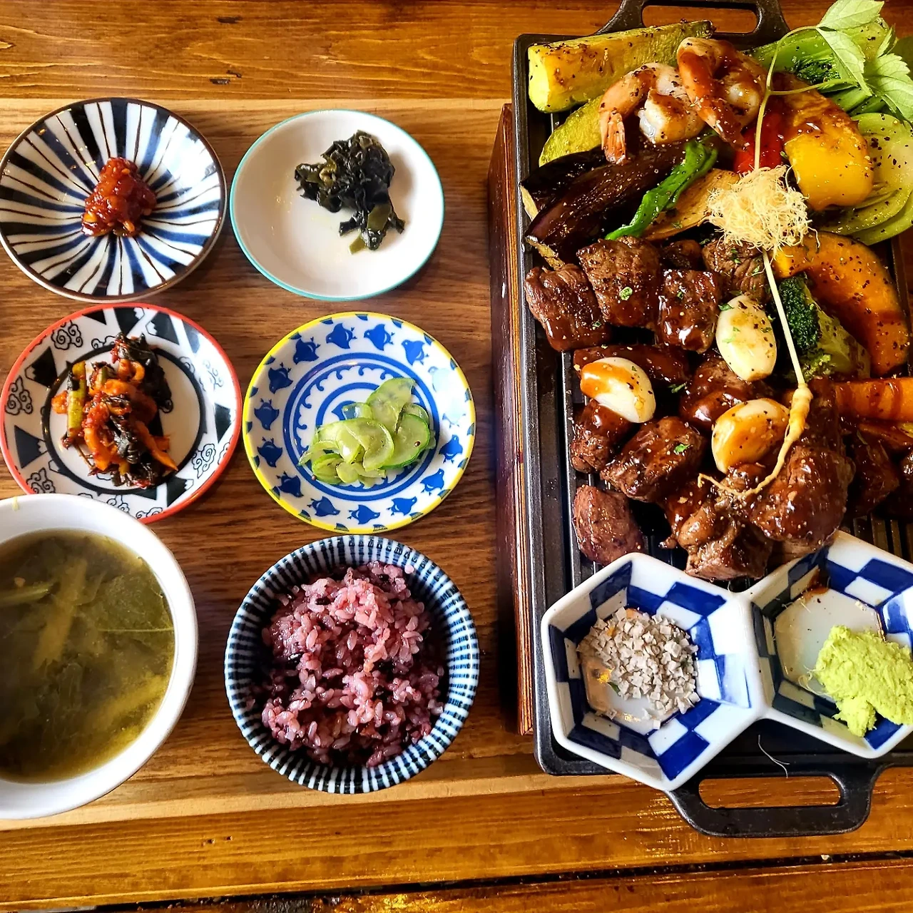 달려드는 녀석들이 혼을 빼는 사이 주문한 음식이 가지런히 식탁에 놓이는데 먹기도 전에 색감에 반한 우리는 박수를 치며 좋아라 한다.