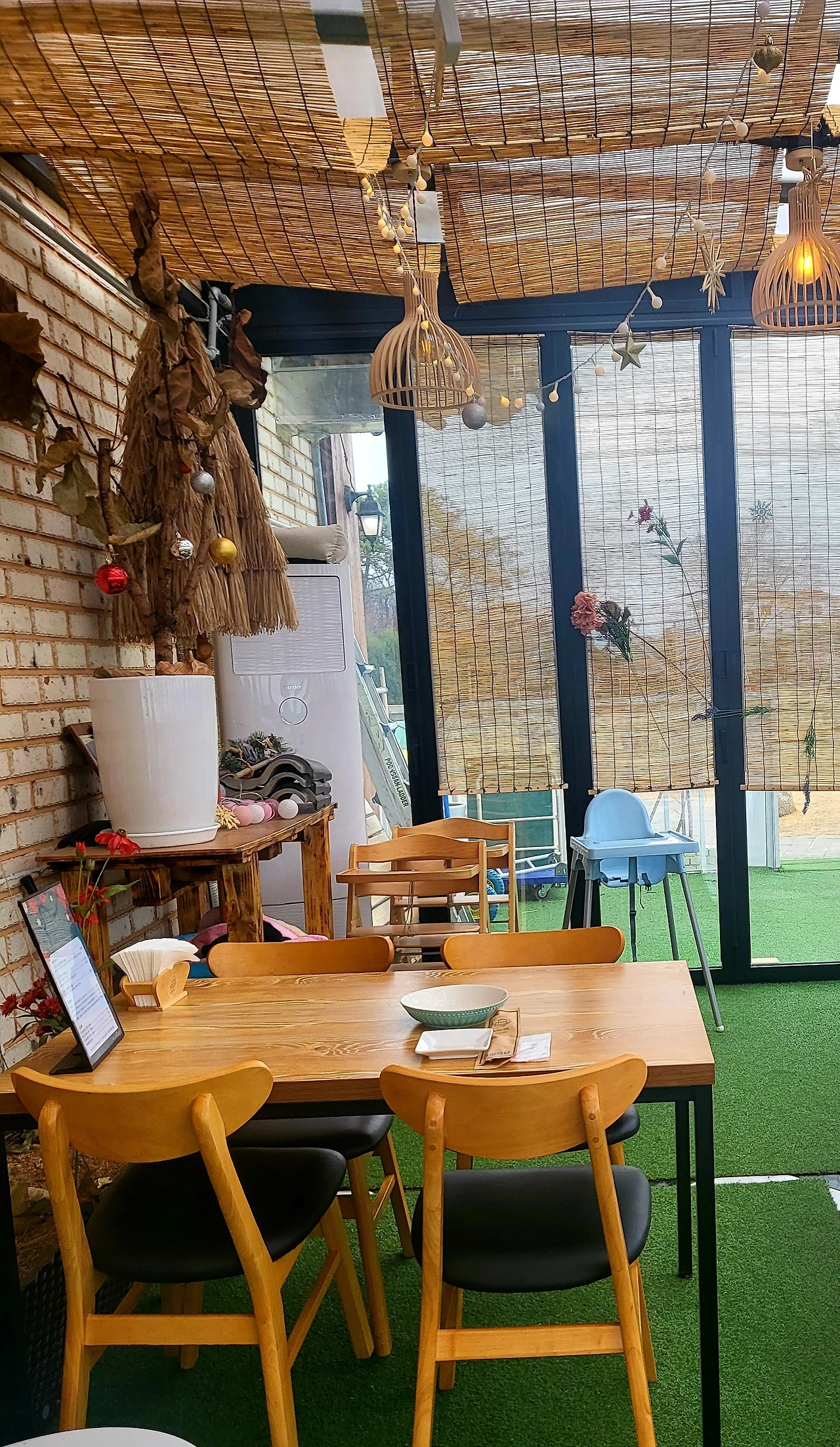 농가의 식탁은 홀 테이블과 프라이빗 룸, 유리 테라스로 나뉘어 있는데 어떤 공간을 선택해도 나름의 독특한 분위기를 즐길 수 있다. 보리, 귀리, 벼리(별) 짓궂은세 녀석을 프라이빗한 방에 몰아넣고 정신을 수습한다.