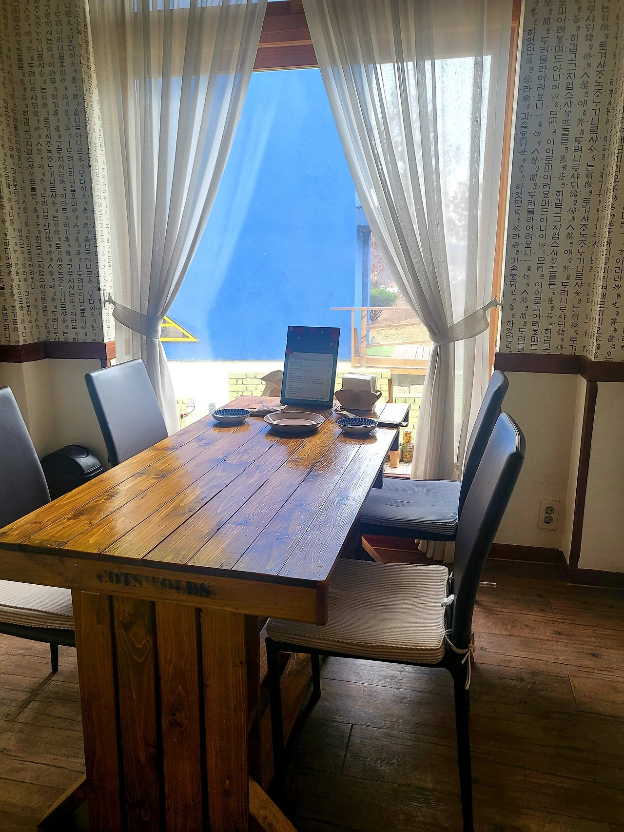농가의 식탁 외부 풍경과 내부 전경