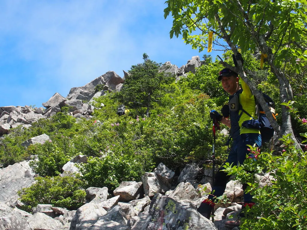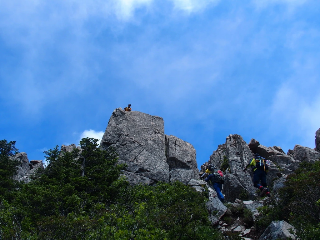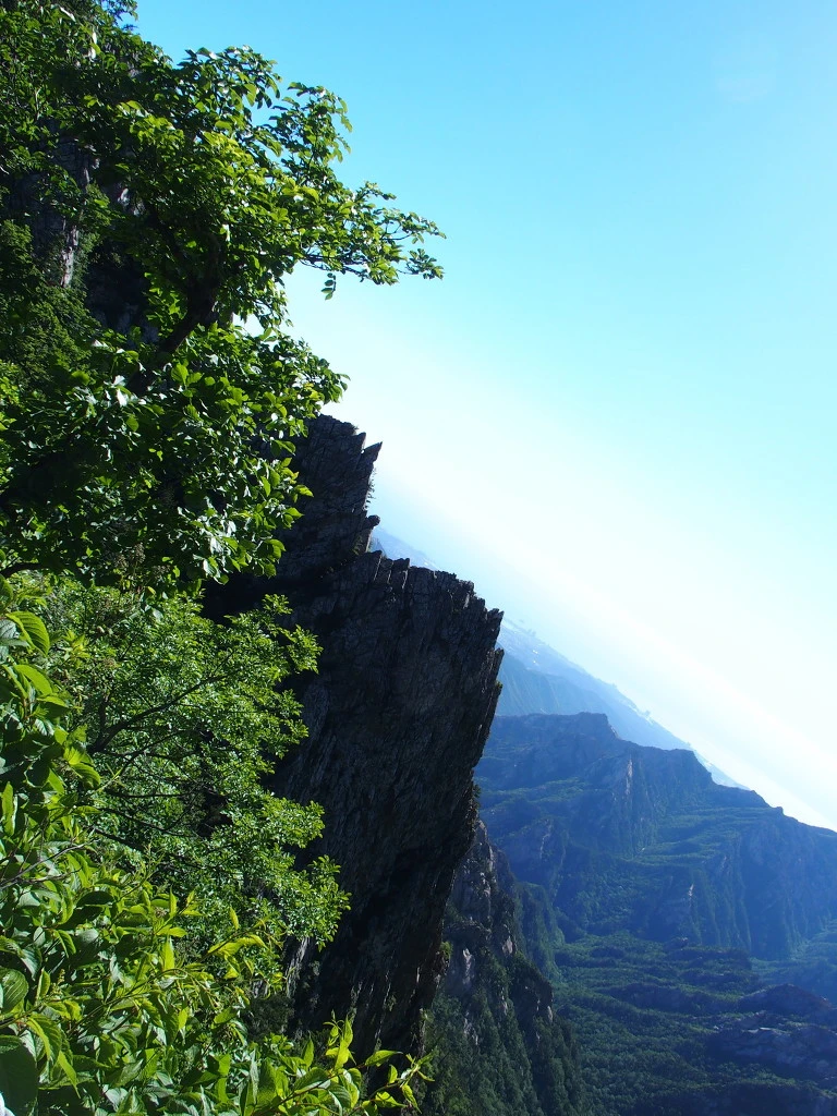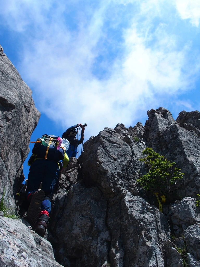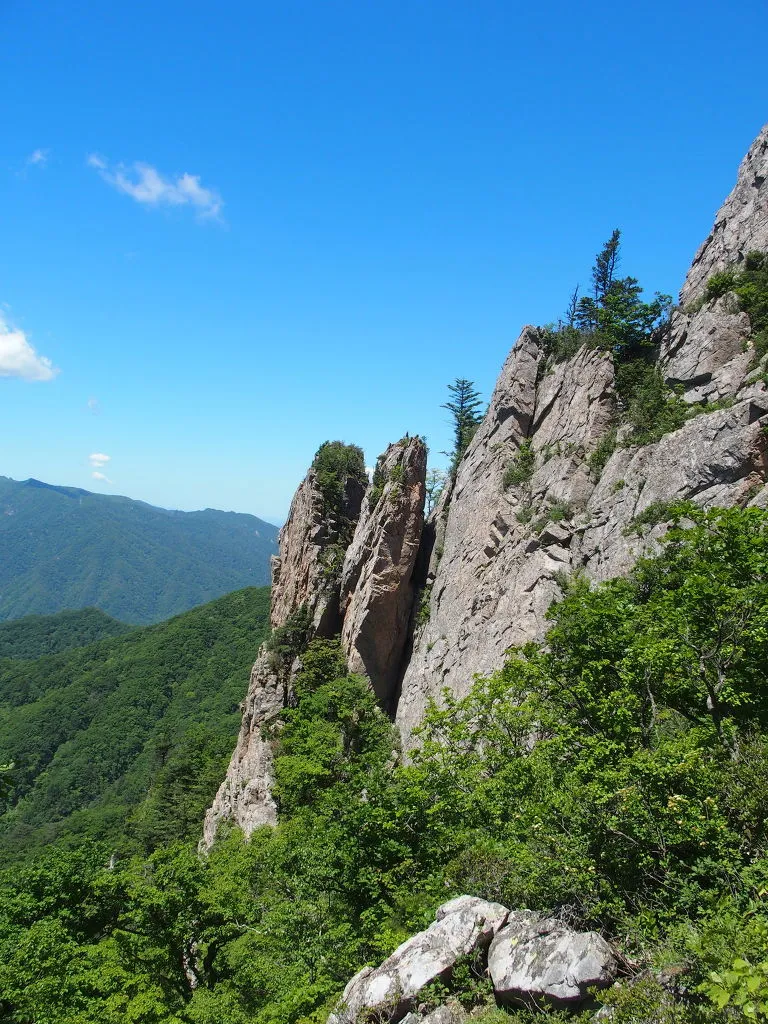 너덜길은 여기가 끝이 아니다. 가파른 바위에 매달린 밧줄을 잡는데. 저 바위 끝 너머는 천 길 낭떠러지다.
