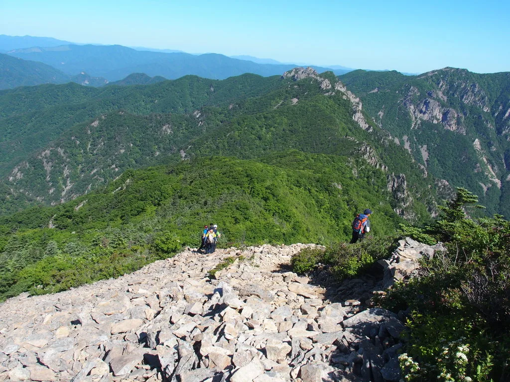 사방에 비경을 펼쳐두고 정신을 빼앗던 산은 너덜길을 내어준다. 굼벵이 모양 기어 내려가는 나 때문에 후미에게 또 길을 내어준다.
