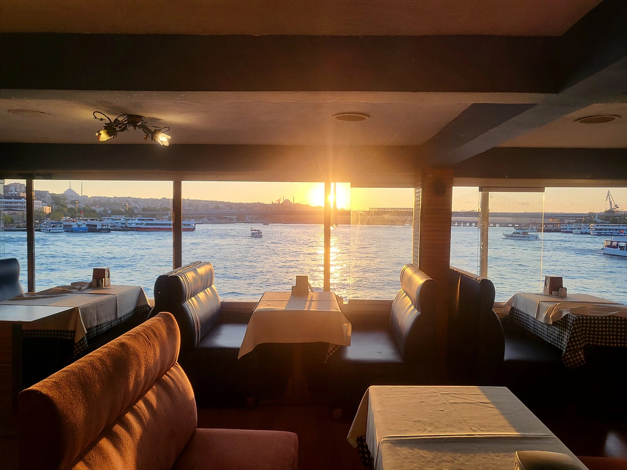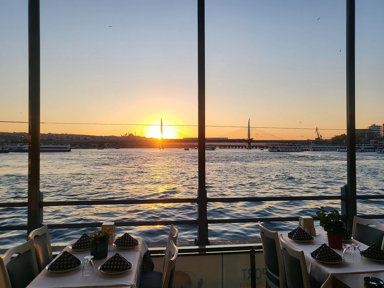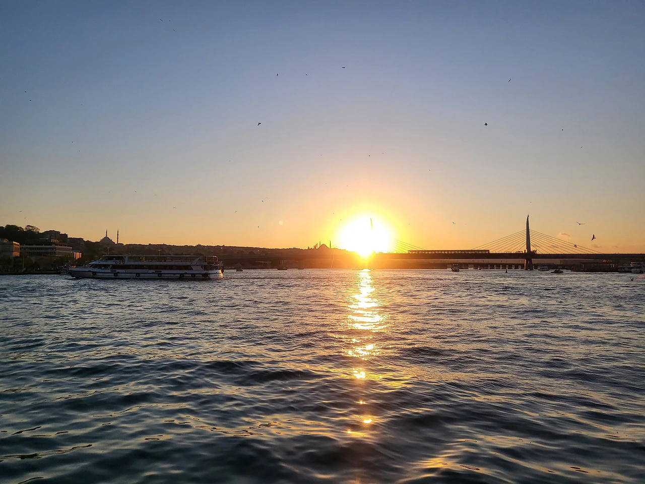 불을 뿜듯 맹렬하게 지상을 달구던 태양은 갈라타 다리 아래 강물에 몸을 던진 후에야 비로소 이성을 찾은 것 같다. 얌전한 파도에 몸을 실은 태양은 하루의 숙명이 다하기 전 가장 낮은 자세로 지상에서 보여줄 수 있는 최상의 아름다운 모습으로 자신을 승화시키는 중이다.