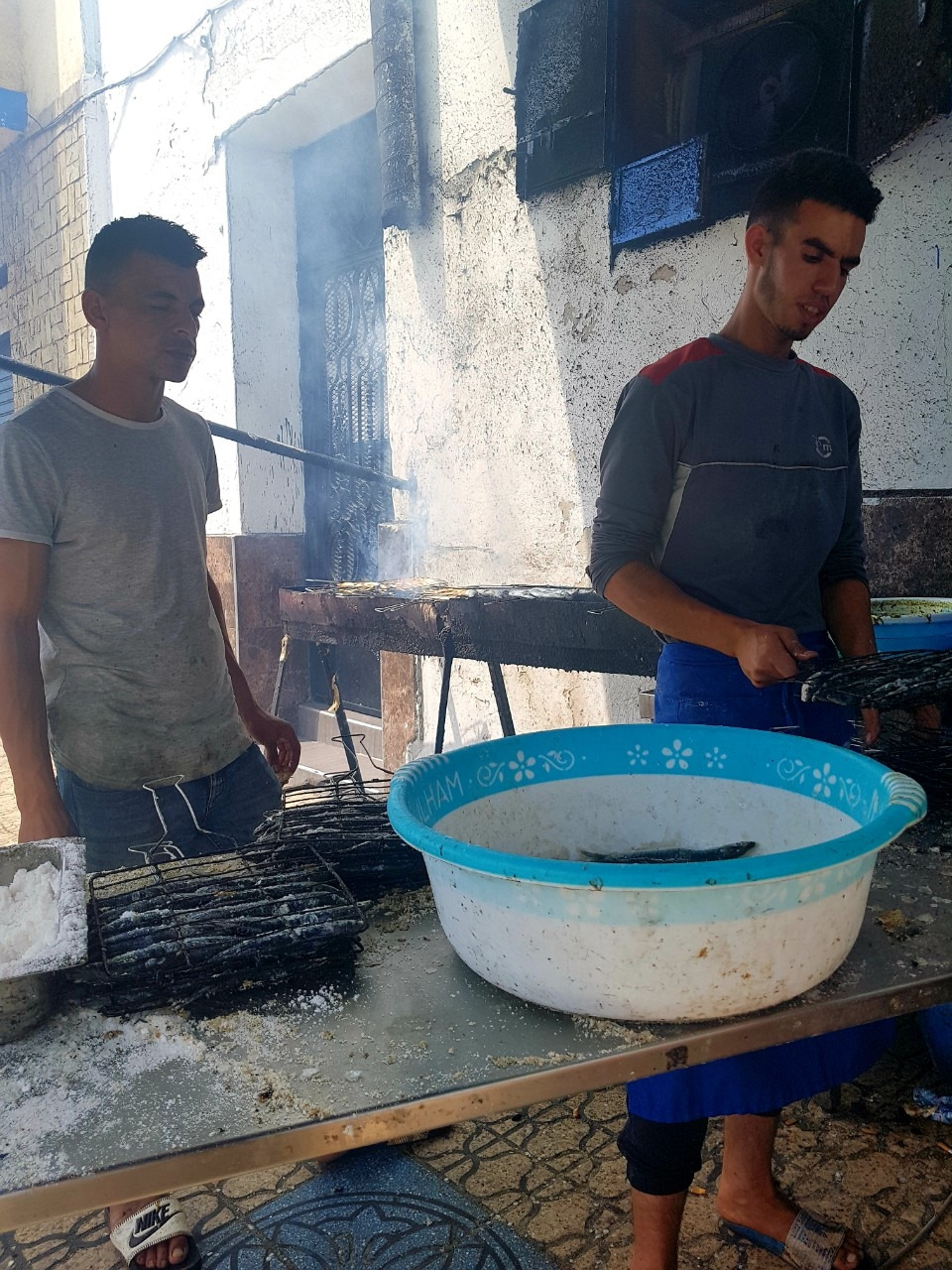 지금 이곳은 정어리 철인 데다 정어리가 가장 맛있는 계절이란다. 나도 정어리를 스무 마리 정도 사서 사람들이 제일 붐비는 구이집을 찾는다. 생선 굽는 냄새와 연기, 땀으로 흥건하게 젖은 옷을 입고 화덕에 붙어 있는 사람들, 빵과 샐러드 라임주스를 주문하니 주인은 정어리를 순식간에 다듬어 여물통처럼 생긴 구이통 위 커다란 석쇠 위에 생선을 얹고 굵은소금을 술술 뿌려 노릇하게 구워낸다.