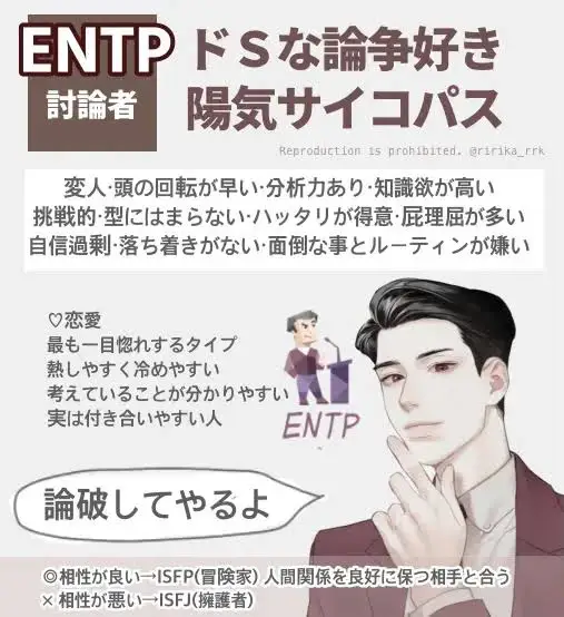 정리하자면, ISFJ가 일본인의 대표적인 유형이고 일본에 안 맞는 대표적인 유형이 ENTP군요!