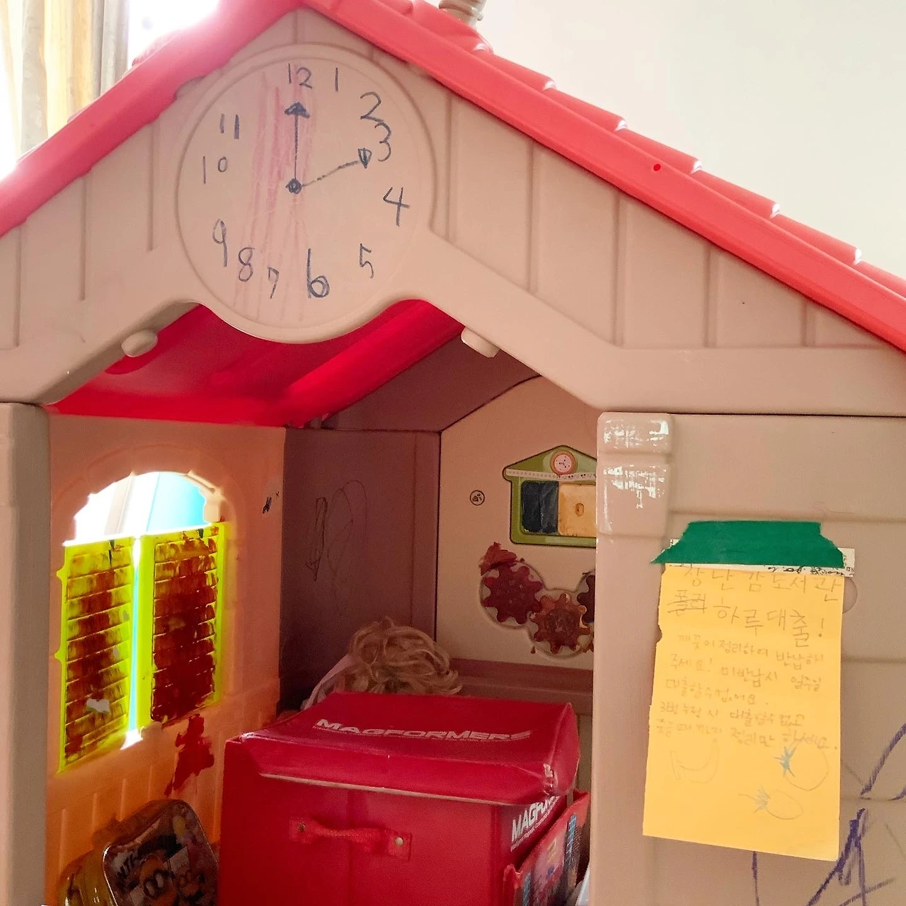 하나씩 장난감을 빌려가서 놀고 정리해서 반납하는 시스템이다