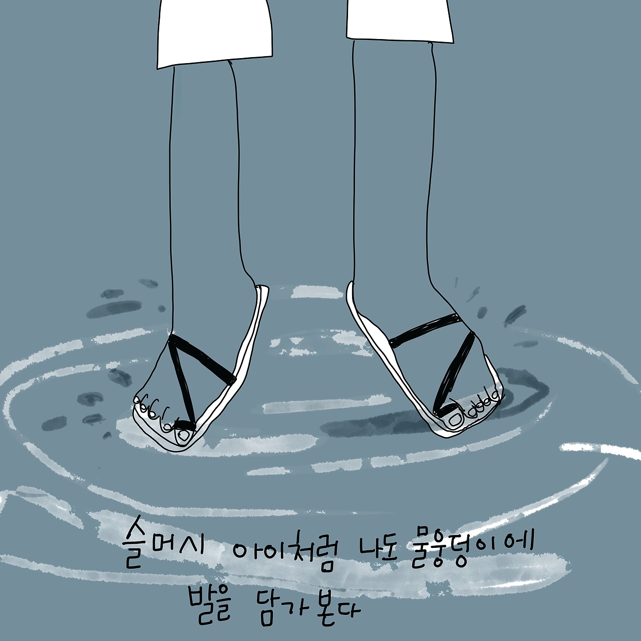 아이를 보내고 혼자 되돌아오는 길에 아이처럼 나도 물웅덩이에 발을 쓰윽 넣어봤다