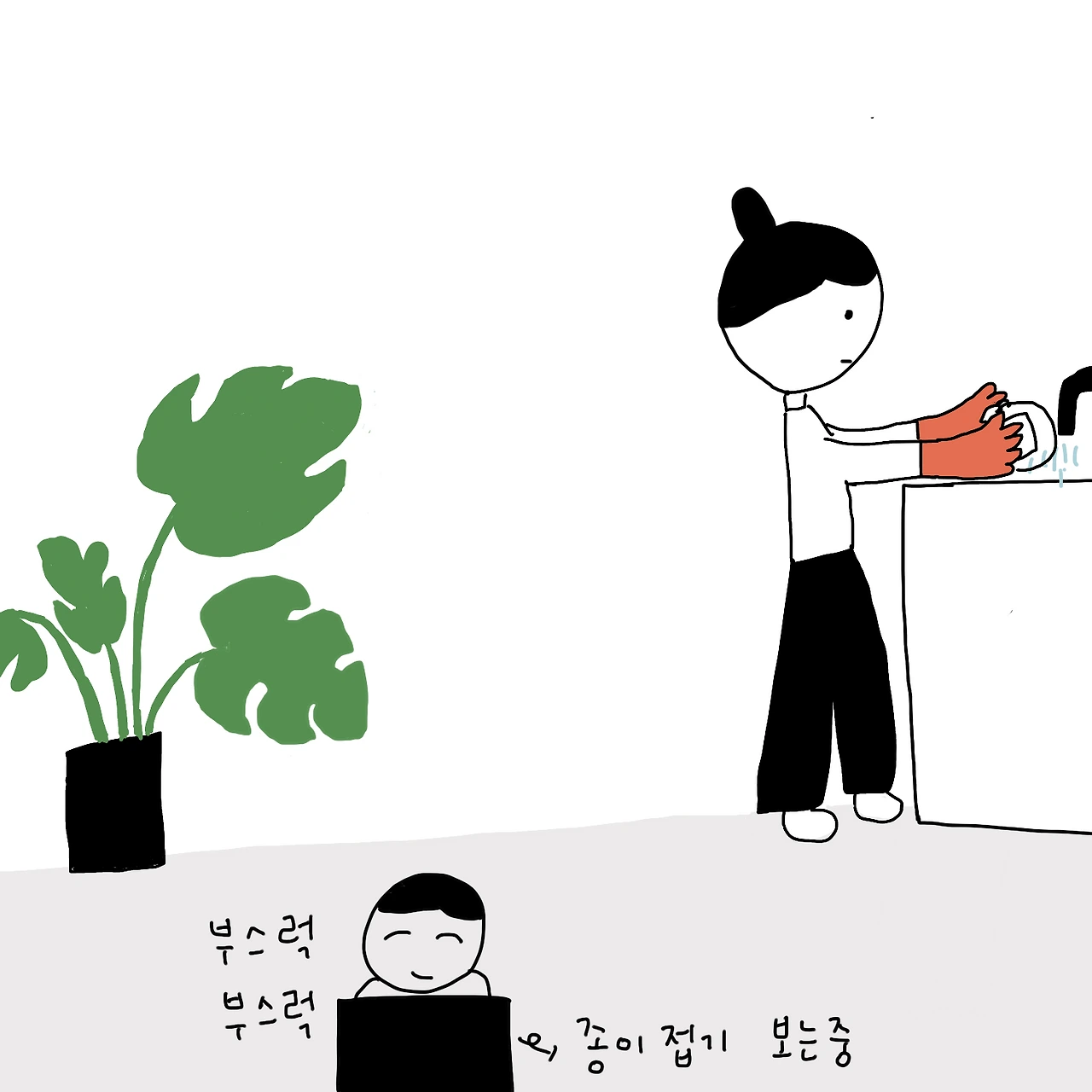 종이접기를 열심히 따라 하던 아이는