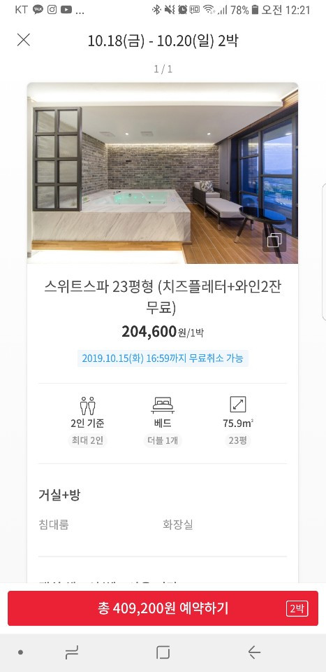 3번 검색 필터 조건에 따라 검색해보았고 괜찮은 호텔 2개를 찾았다.