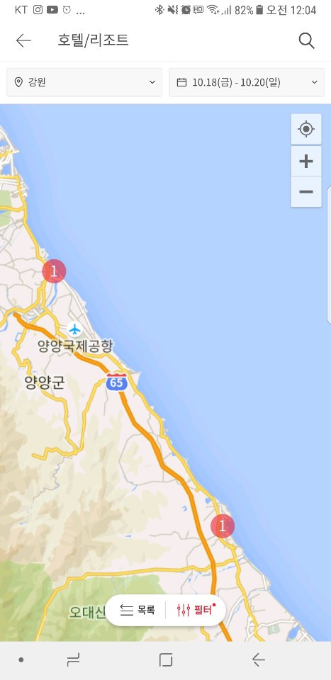 [지도] 버튼을 선택하면 지도가 나온다. 목록/지도를 번갈아가면서 자유롭게 사용할 수 있다.