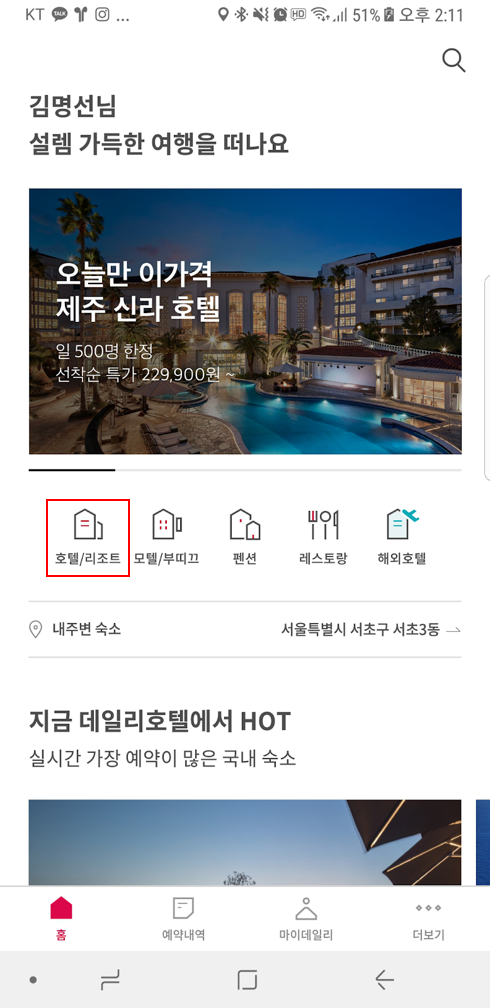 2. (현재글) 국내 호텔은 국내 앱으로, 데일리 호텔