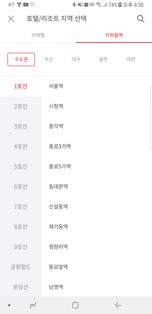 지역 선택은 지역명/지하철역 기준으로 선택이 가능해서 위치를 원하는 곳에 맞춰 맞춤설정할 수 있다.