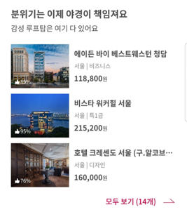 1.지역이 정해지지 않은 경우 메인화면에서 큐레이션된 호텔을 보고 필요 호텔을 찾아본다.