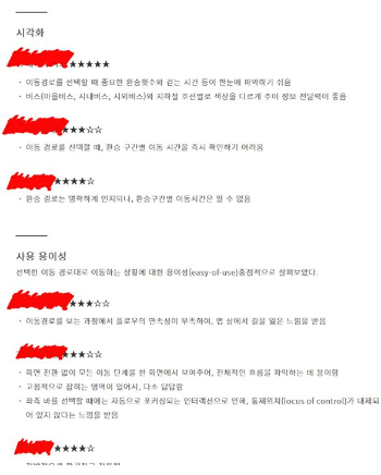 처음 분석 주제를 정할 때 모두 다른 지도 앱을 사용하고 있다는 점이 흥미로워서 선택하게 되었었는데 분석을 진행할 수록 각자의 선호 앱이 바뀌는 신기한(?) 경험을 하게되었다. 그만큼 각각의 지도 앱들이 비슷한듯 하면서도 개인의 주 사용 패턴이나 목적에 맞춰 선택할 수 있게끔 나름의 특징들을 가지고 있다는 점이 흥미로웠고, 기획자들의 고뇌를 깊이 공감했다....