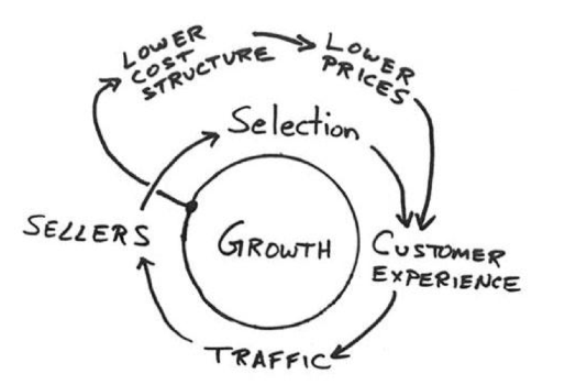 인과관계 또는 동등관계가 고리를 물고 순환하는 경우이다. 이미 비즈니스 업계에서는 유명한, Amazon의 flywheel이 대표적인 순환구조라고 할 수 있다.