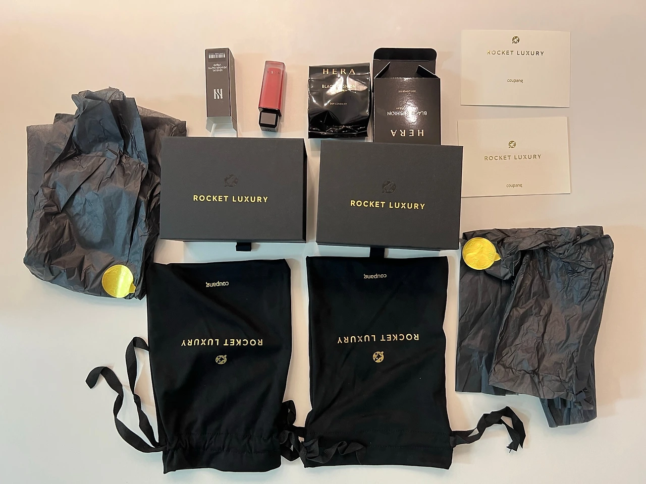 11. ROCKET LUXURY 라는 이름과 로켓 모양의 로고, 그리고 coupang 이라는 글자까지. 금장을 할지 은장을 할지, 혹은 컬러를 넣을지 테스트했을텐데, 생각보다 큰 고민 안하고 '고급을 상징하는 블랙+골드' 계열로 확정 후 커스텀 가능한 기성품들 중 하나씩을 선택했을 수도 있다.