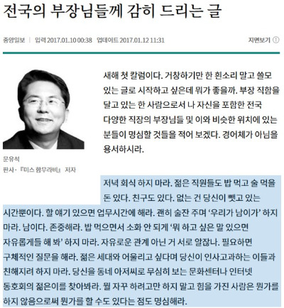이런 올드한 회식 문화가 여전히 이어지는 우리나라 직장문화가 답답하다.