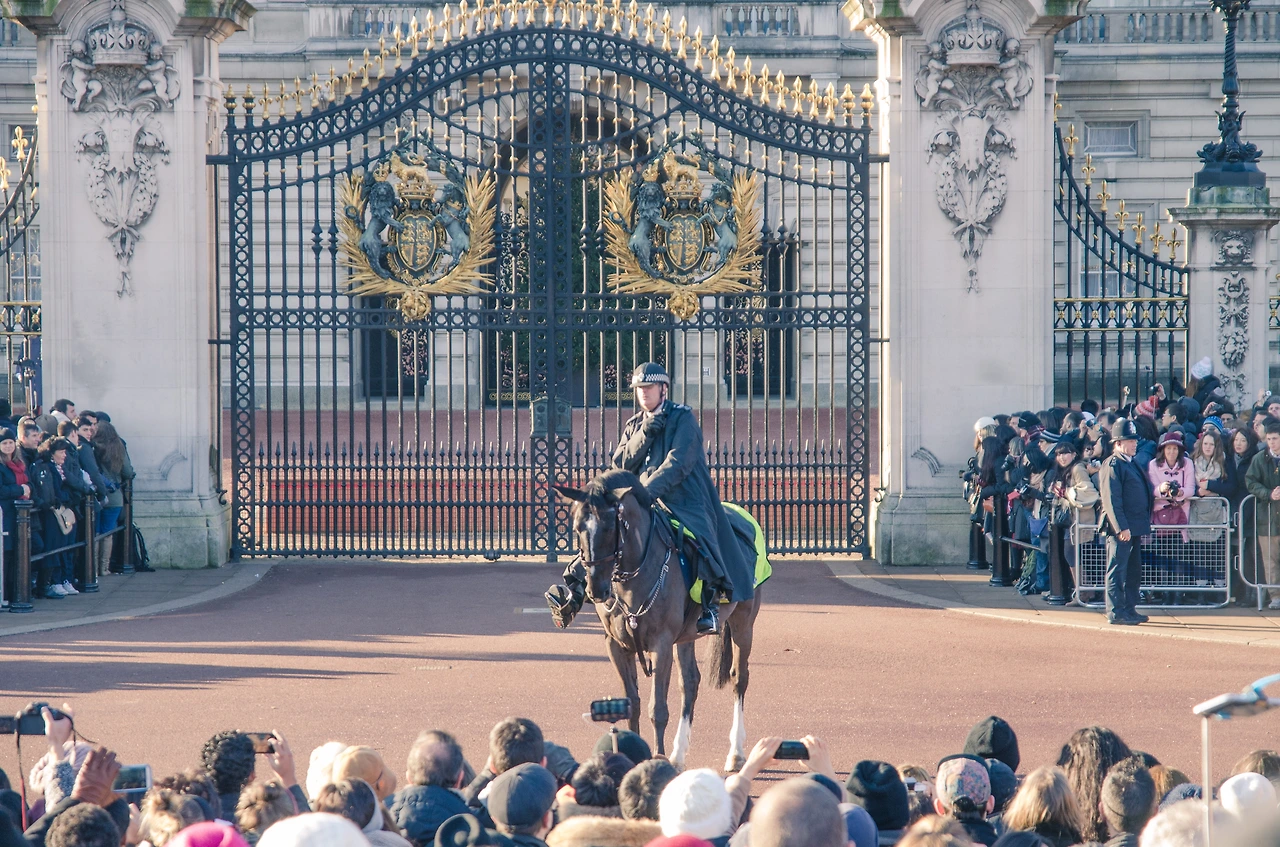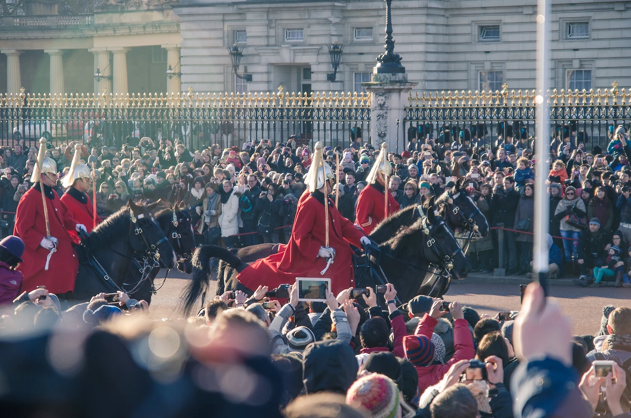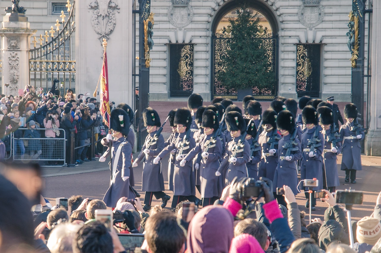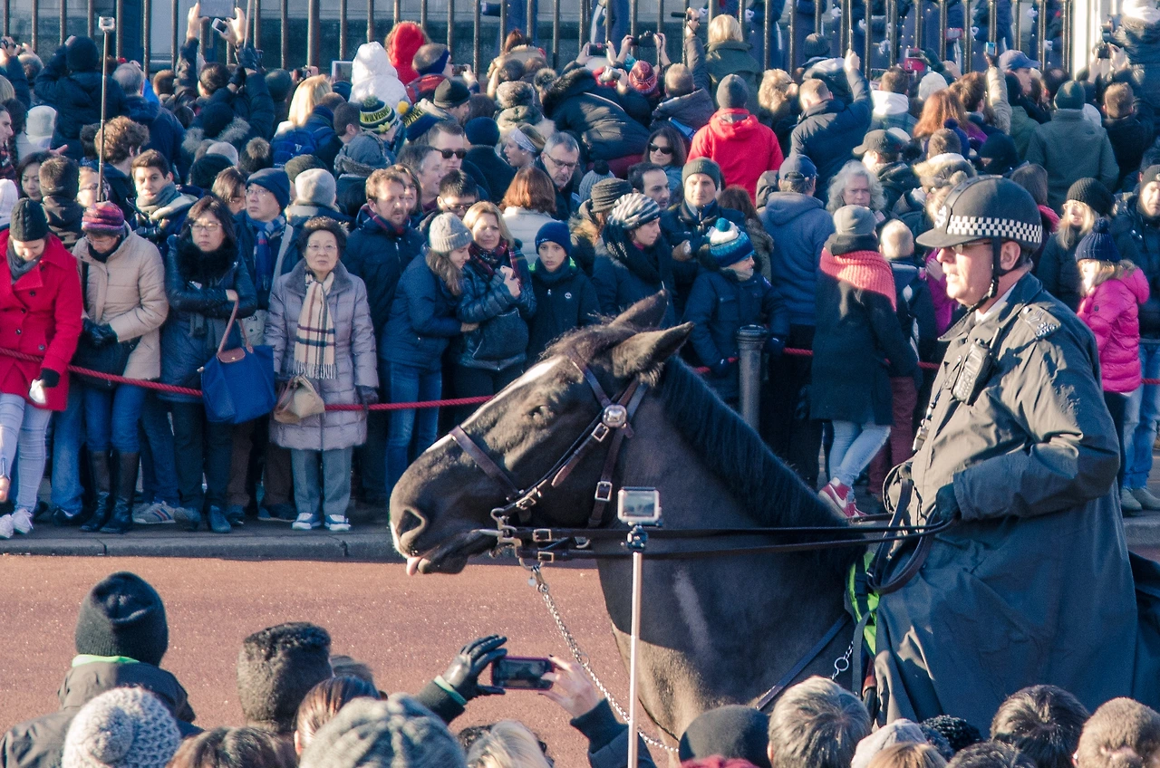 이 친구와 이런저런 이야기를 나누고 있으니 어느덧 근위병 교대식이 시작됐다. 이 날 근위병 교대식을 감상하면서 가장 인상깊었던 것은 칼같은 열병식도, 흡사 어릴적 가지고 놀던 꼬마병정 장난감 같은 모습의 병사들도 아니었다. 그것은 웨스트 민스터 사원 이후로 다시 한번 느낀 사회적 약자에 대한 배려였다. 말을 탄(!) 런던의 경찰들이 아이를 동반한 부모들을 근위병들이 가장 잘 보이는 곳으로 안내해주고, 꼬마들이 그 앞에 쪼르르 앉아서 볼 수 있게끔 해주는 풍경은, 추운 겨울 한 시간 동안이나 서서 기다리던 여행자의 마음을 따뜻하게 녹여주던 훈훈한 모습이었다.