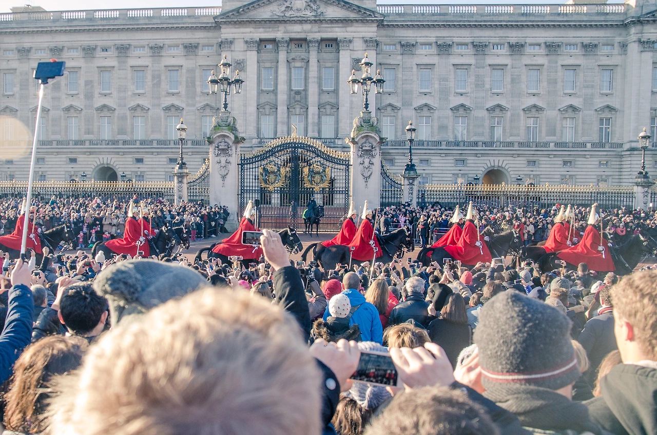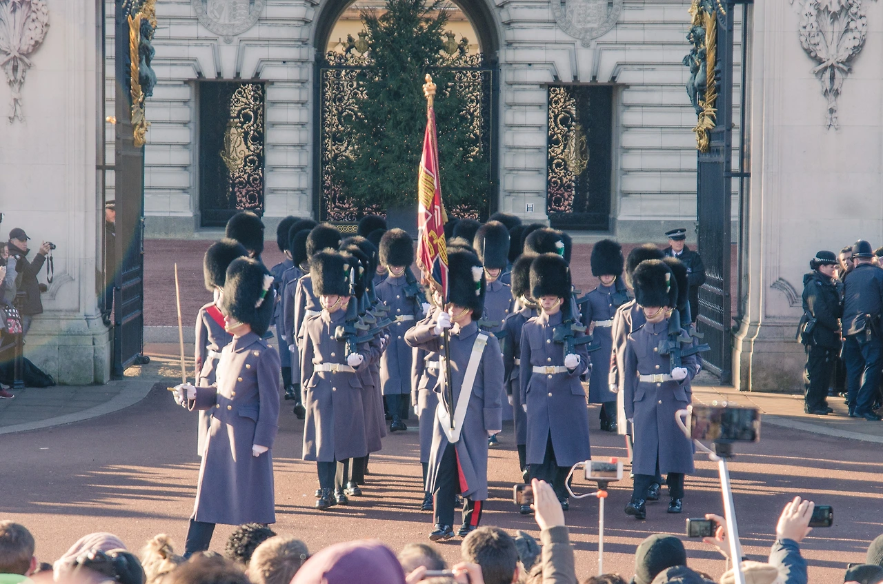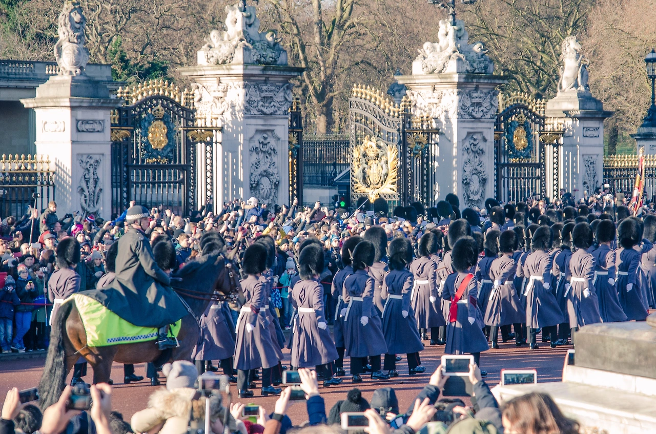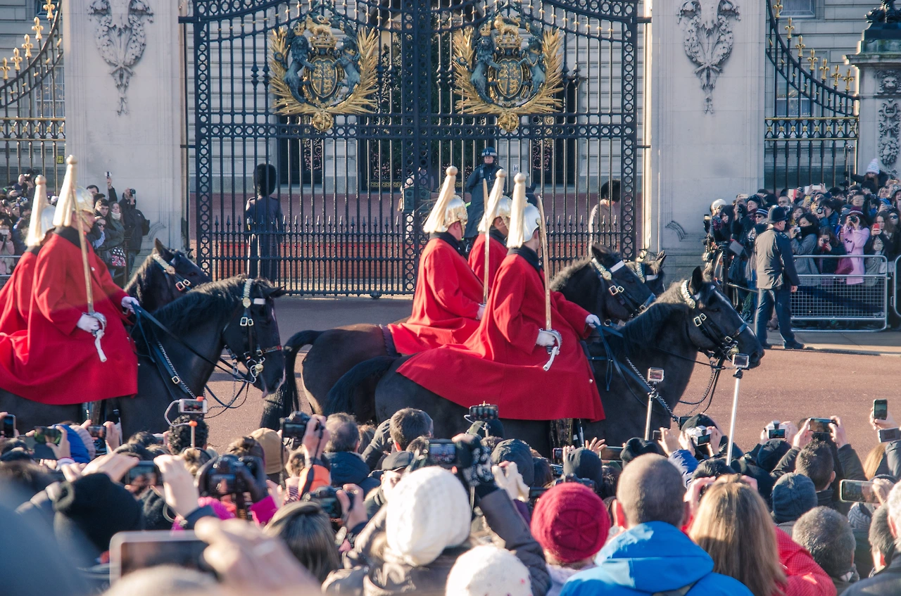 이 친구와 이런저런 이야기를 나누고 있으니 어느덧 근위병 교대식이 시작됐다. 이 날 근위병 교대식을 감상하면서 가장 인상깊었던 것은 칼같은 열병식도, 흡사 어릴적 가지고 놀던 꼬마병정 장난감 같은 모습의 병사들도 아니었다. 그것은 웨스트 민스터 사원 이후로 다시 한번 느낀 사회적 약자에 대한 배려였다. 말을 탄(!) 런던의 경찰들이 아이를 동반한 부모들을 근위병들이 가장 잘 보이는 곳으로 안내해주고, 꼬마들이 그 앞에 쪼르르 앉아서 볼 수 있게끔 해주는 풍경은, 추운 겨울 한 시간 동안이나 서서 기다리던 여행자의 마음을 따뜻하게 녹여주던 훈훈한 모습이었다.