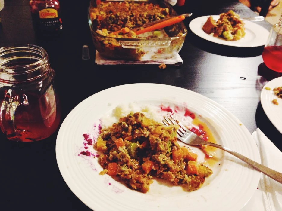 이 요리가 보통 칠면조 요리를 할 때 칠면조의 배를 가르고 그 속에 채워 넣는 스터핑이라고 한다. 다진 고기와 당근 등의 각종 야채로 만든 요리인데, 칠면조 속에 넣으면 잘 익지 않아서 이렇게 따로 먹는 편이 훨씬 더 조리하기에 편하다고 아내분께서 말씀하셨다.