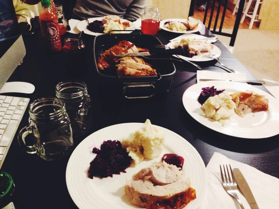 이것이 바로 플레이팅 한 칠면조 요리의 모습. 칠면조는 내가 생각한 모습보다 훨씬 더 큰 모습이었다. 다섯 명이서 한 마리를 다 먹지도 못하고 남길 정도로 한 마리의 양은 실로 엄청났다.