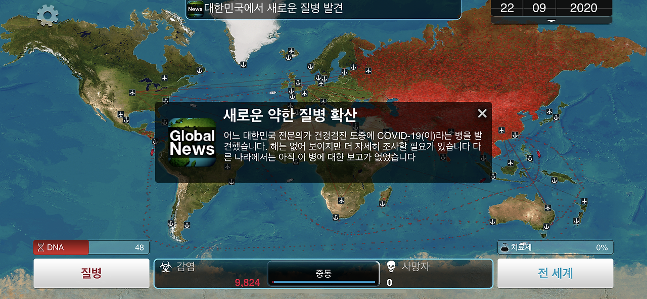 문득 여기서 한 가지 의문점이 생겼다. 코로나19와 사스, 메르스 간에는 과연 어떤 차이점이 있을까? 그러다 문득 종종 즐겨하던 전염병 주식회사(Plague Inc.)의 사례를 떠올리게 되었다.