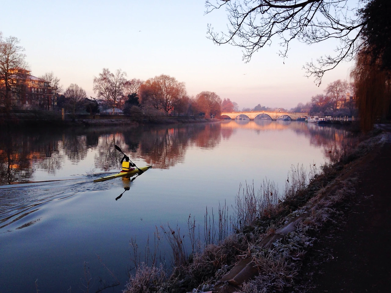 리치몬드 힐로 오르는 길의 템즈 강변으로 내려오자, 런던 시내에서 봐왔던 템즈강과는 너무나도 다른 풍경이 펼쳐졌다. 그건 정말 생각지도 못했던 풍경이었다. 새벽 안개가 차분하게 깔린 강변에는 작은 보트들이 한가로운 듯이 정박해 있었고, 다소 을씨년스러울 수 있었던 한겨울의 나무들도 겨울 아침의 차분한 햇살과 어울려 운치 있게 느껴졌다. 앙상한 나뭇가지는 오히려 새벽 안개와 어우러져 신비스러운 분위기를 연출해내고 있었다.