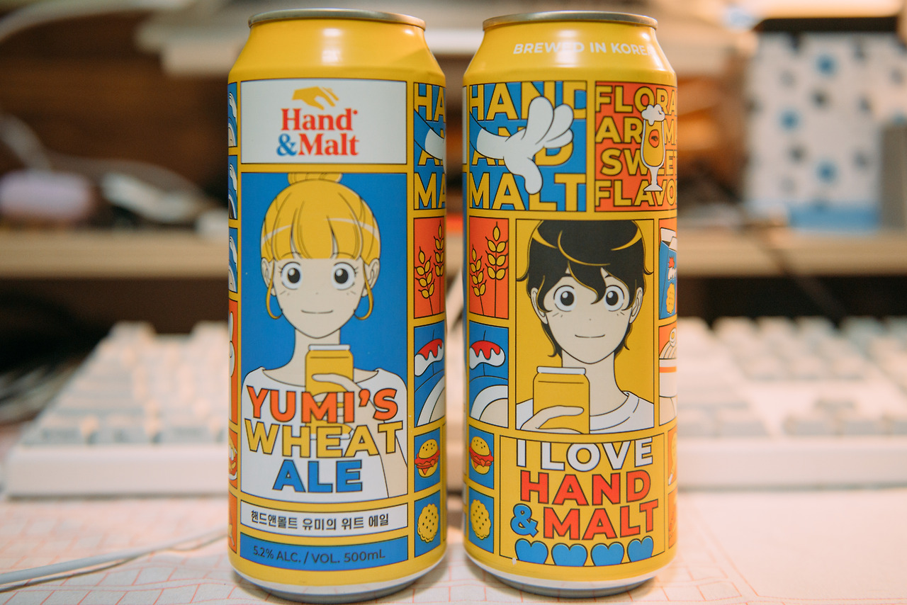 사실 이렇게 내가 갑자기 웹툰 <유미의 세포들>을 얘기하게 된 것은 이 맥주를 소개하기 위해서다. 웹툰 <유미의 세포들>과 국내 수제 맥주 회사 핸드 앤 몰트가 함께 콜라보 한 '유미의 위트 에일'이다. 인터넷으로 이 소식을 접한 뒤, 당장 사서 마셔야겠다는 생각이 들어 동네 편의점 몇 군데를 뒤졌다. 출시한 지 얼마 되지 않아 다섯 군데 정도를 뒤진 뒤에야 가까스로 판매처를 찾아낼 수 있었다. 남아있던 네 캔을 전부 쓸어왔다. 가격은 착하게도 편의점 캔맥주 국룰인 네 캔에 만원이었다.