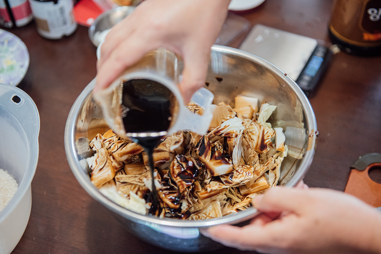 엄마는 옛날에 외할머니께서 해주셨던 그 맛과 비슷하다고 신기해했다. 오랜만에 먹어보는 맛이라며 잠시 생각에 잠겼다. 나도 배춧잎을 하나 들어 먹어봤는데, 젓갈이 들어가지 않아 맛이 깔끔한 것이 이 장 김치의 가장 큰 특징이라는 생각이 들었다. 달짝지근한 맛이 나면서도 자극적이지 않아서, 어린 아이나 식이를 조절해야 하는 사람들이 먹기에도 좋을 법한 김치다. 레시피만 있다면 만들기가 번거롭지 않으나, 한꺼번에 많이 만들어두고 먹을 수 있는 김치가 아닌 만큼 먹고 싶을 때만 딱 만들어둬야 한다는 점은 다소 귀찮을 수도 있겠다.