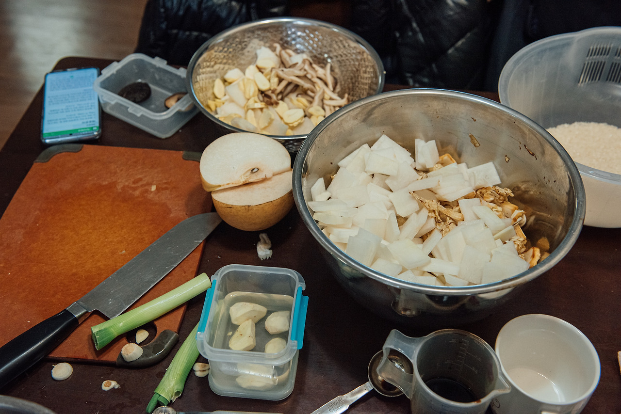 외할머니에게는 외할아버지 생신이나 명절처럼 특별한 날에만 담가 먹는 김치가 있었다고 하는데, 그게 바로 간장으로 양념을 한 장 김치였다. 장 김치는 우리가 흔히 아는 지금의 김치와는 개념 자체가 많이 다른 음식이다. 고춧가루, 젓갈은 물론이고 소금도 넣지 않은 채 간장과 설탕으로만 간을 하는 김치로, 여기엔 밤과 잣, 표고와 석이버섯, 배 등의 귀한 식재료들이 들어간다. 때문에 일반적인 서민들이 쉽게 담가먹을 수 없는 김치였고, 왕실에서나 즐겨 먹을 수 있는 김치였다. 장 김치에 대한 이야기는 마치 어릴 적 듣던 흥미로운 동화처럼 느껴졌는데, 문득 엄마와 함께 외할머니의 장 김치를 재현해보고 싶다는 생각이 들었다.