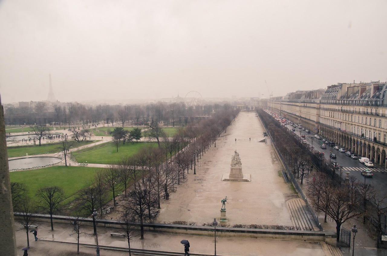 비바람이 몰아치고 있다는 증거는 저 아래서 흔들리는 겨울 나목들과 창문에 부딪히는 굵은 물방울들이 명백히 보여주고 있었지만, 고요한 박물관 실내에서 바라본 파리는 믿기지 않을 만큼 평온했다. 바깥으로 보이는 풍경 속, 사람 많은 튈르리 정원은 온데간데없고 마치 시간은 정지한 듯했다. 그런 순간을 느낄 수 있었다는 사실 하나만으로 장식 박물관에 올 이유는 충분했다. 저 멀리 보이는 에펠탑과 그 뒤로 펼쳐진 회색의 파리. 그건 내가 지금까지 봐왔던 그곳의 모습 그대로였다.