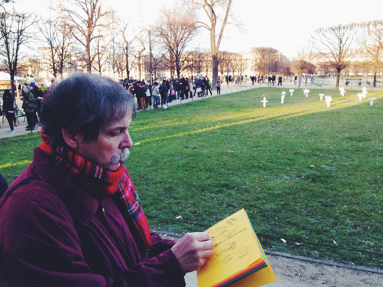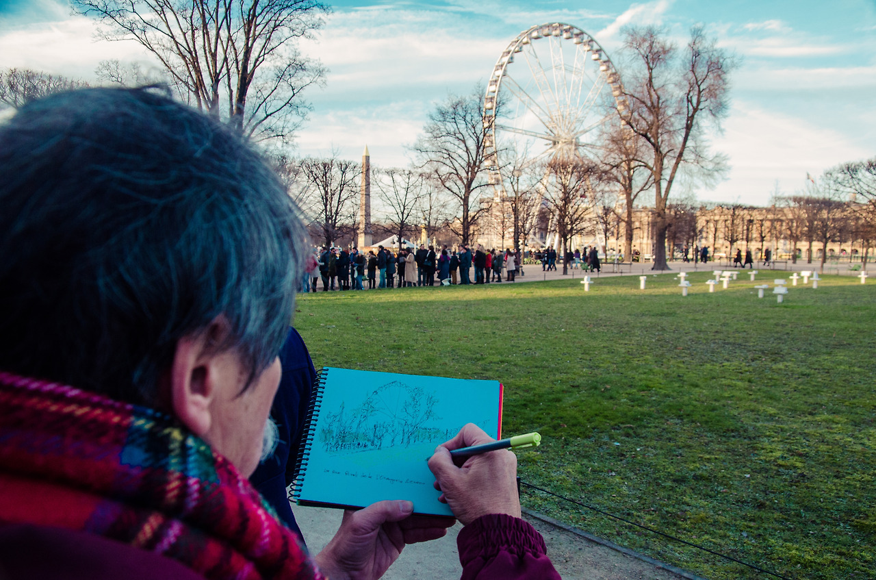그렇게 한참 동안 그림을 그리던 그는 다시 수첩과 펜을 집어넣고 아내와 다정하게 이야기를 주고받기 시작했다. 그사이 줄은 미술관 바로 앞까지 줄어들어 있었고 잠시 후 나는 드디어 오랑주리 미술관에 입장할 수 들어갈 수 있었다.