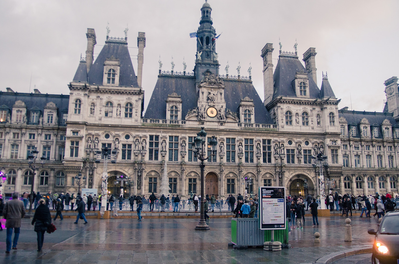 센느강의 풍경과, 강을 따라 길게 늘어선 노점상들을 기웃거리던 나는 파리 시청사 쪽으로 발걸음을 옮겼다. 파리 시청을 구경하기 위해서였다기보단, 근처에 있는 조르주 퐁피두 센터를 가기 위함이었다. 그때까지는 파리의 시청사를 구경할 생각은 전혀 없었다. 시청하면 으레 떠올려지는 희고 네모난 모양의 밋밋한 전형적인 관공서 건물이 있을 거라고 예상했기 때문이었는데, 그런 내 예상은 보기 좋게 빗나갔다.