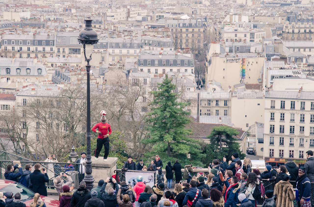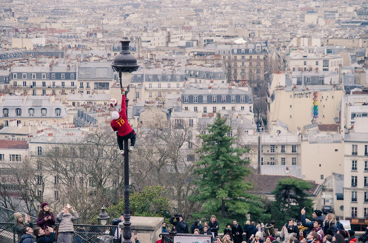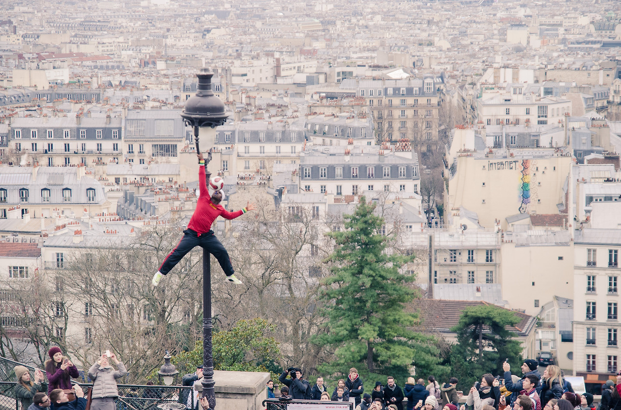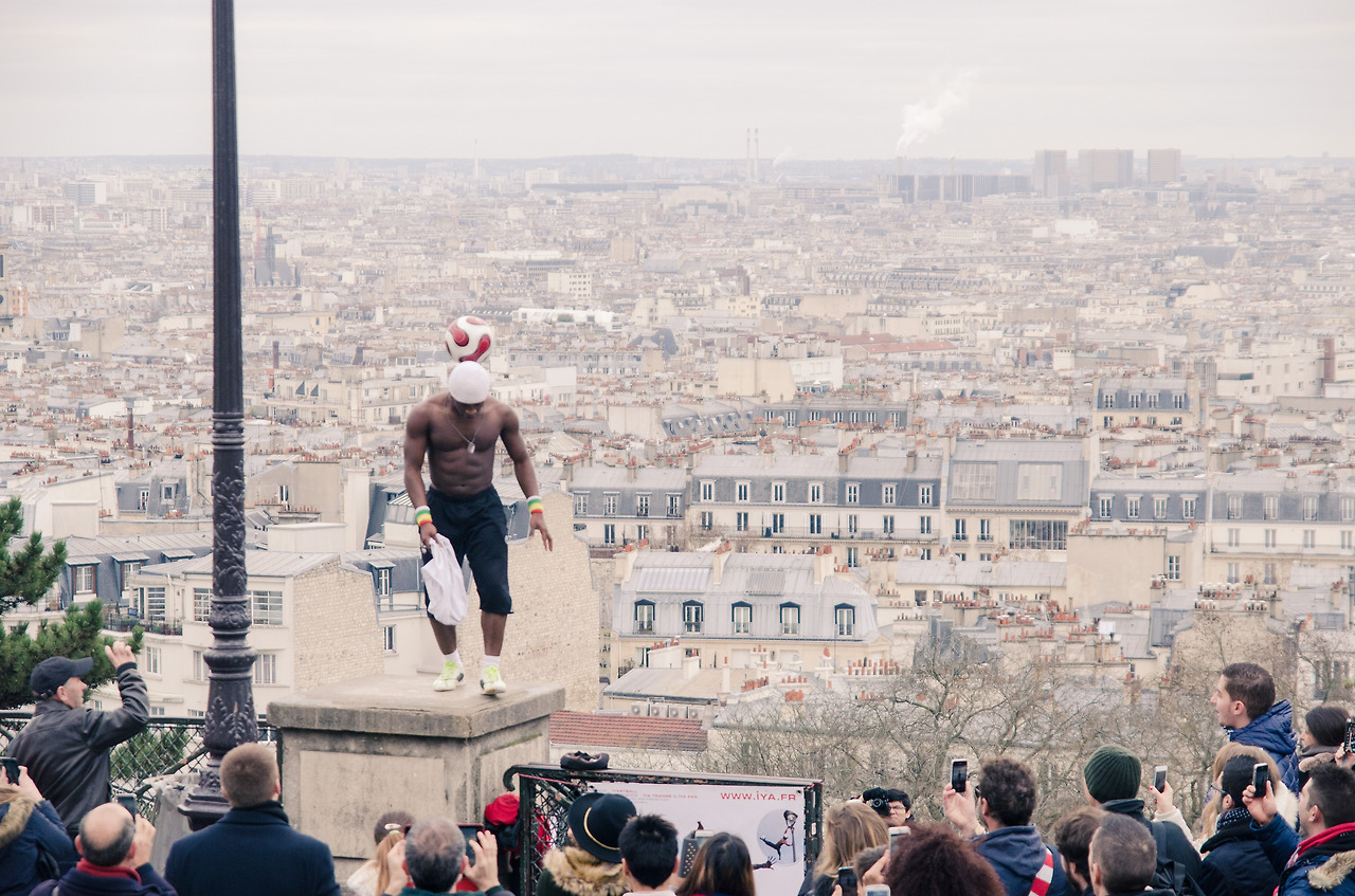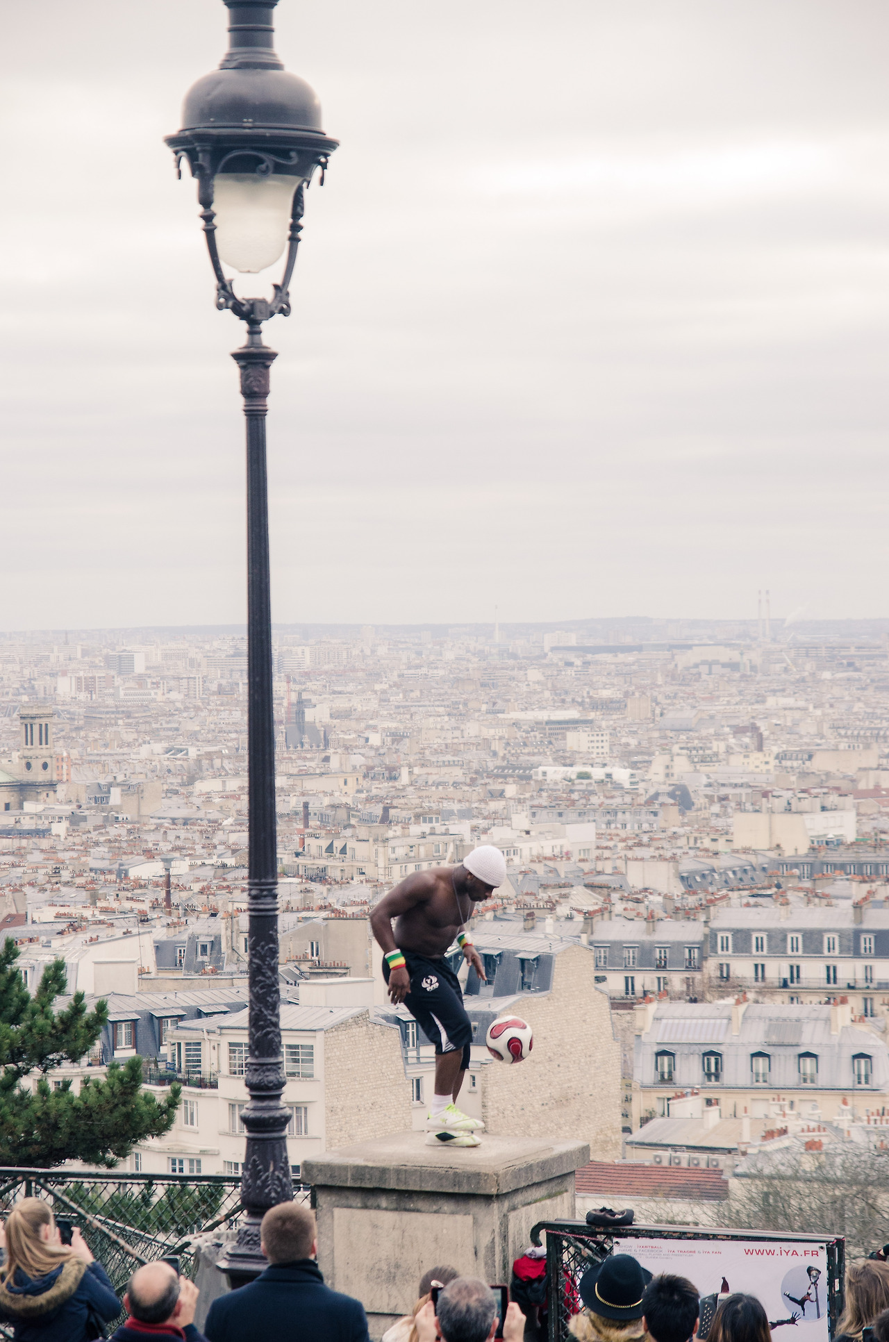 그는 기니 출신의 이야 트라오레라는 풋볼 프리스타일러였다. 격렬한 몸동작을 선보이면서도 공이 몸에 붙은 듯 떨어지지 않는 모습은 눈앞에서 보고도 믿기 힘들었다. 접착제로 붙였다고 해도 믿기 힘든 광경이었다. 한편으론 '그래 저렇게 돈을 벌어야지 사람들 금품을 갈취하면 쓰나, 같은 아프리카 출신이면서'하는 생각도 들었다. 그가 파리 시내를 배경으로 가로등 하나를 오르락내리락하며 선보이는 각종 묘기는 차라리 예술에 가까웠다. 눈 앞에 넓게 펼쳐진 파리 시내는 그의 묘기와 어우러져 훌륭한 배경이 되어주고 있었다.