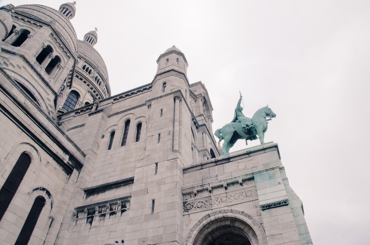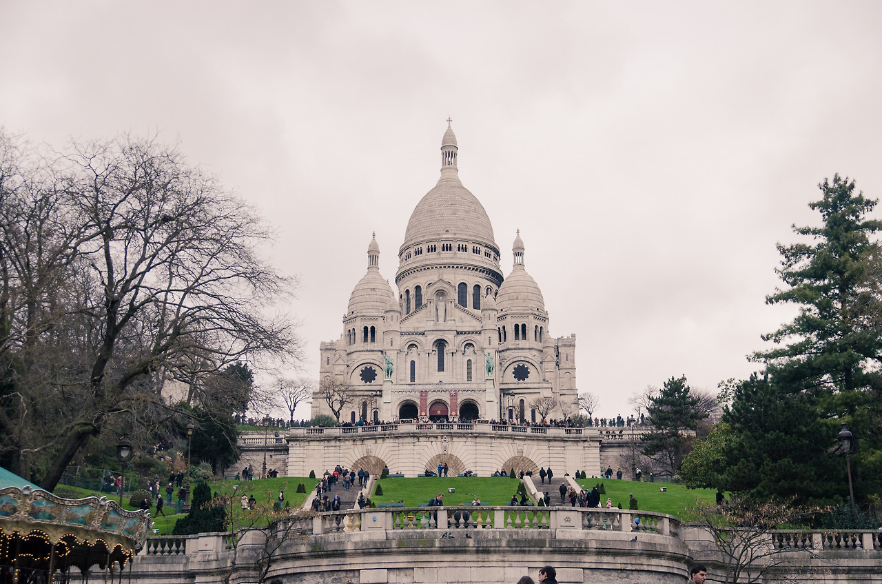 몽마르트 언덕에 다다르자, 저 멀리 사크레쾨르 성당이 보였다. 성당은 파리에서 일반적으로 볼 수 있는 고딕 양식이 아닌 로마네스크 양식과 비잔틴 양식이 혼합된 형태라고 했다. 그러나 역시나 건축에 조예가 깊지 않고선 이런 설명은 쉽사리 와 닿지 않았다. 한 가지 확실했던 건, 파리 시내와 유럽 어디서도 흔히 볼 수 없었던 또 다른 이국적인 형태를 지니고 있다는 점이었다. 몽마르트 언덕 아래서 성당을 보고 있으니 파리가 아닌 중동이나, 기타 다른 지역에 온 듯한 느낌이 들었다. 둥근 모양의 돔은 언젠가 인터넷에서 봤던 중동 어딘가의 이슬람 사원과 닮아 있었다.