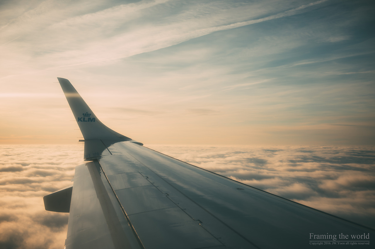 암스테르담의 아침을 날아 프라하로 향하는 비행기 안, 비로소 아침이 되었음을 실감할 수 있었다. 창 밖에선 새벽의 어스름 위로 태양이 떠오르고 있었다. 아름다운 광경이었다. 긴 시간을 날든 짧은 시간을 날든, 비행기는 항상 창가석에 앉는 것이 옳다는 것을 다시금 느낄 수 있었다.