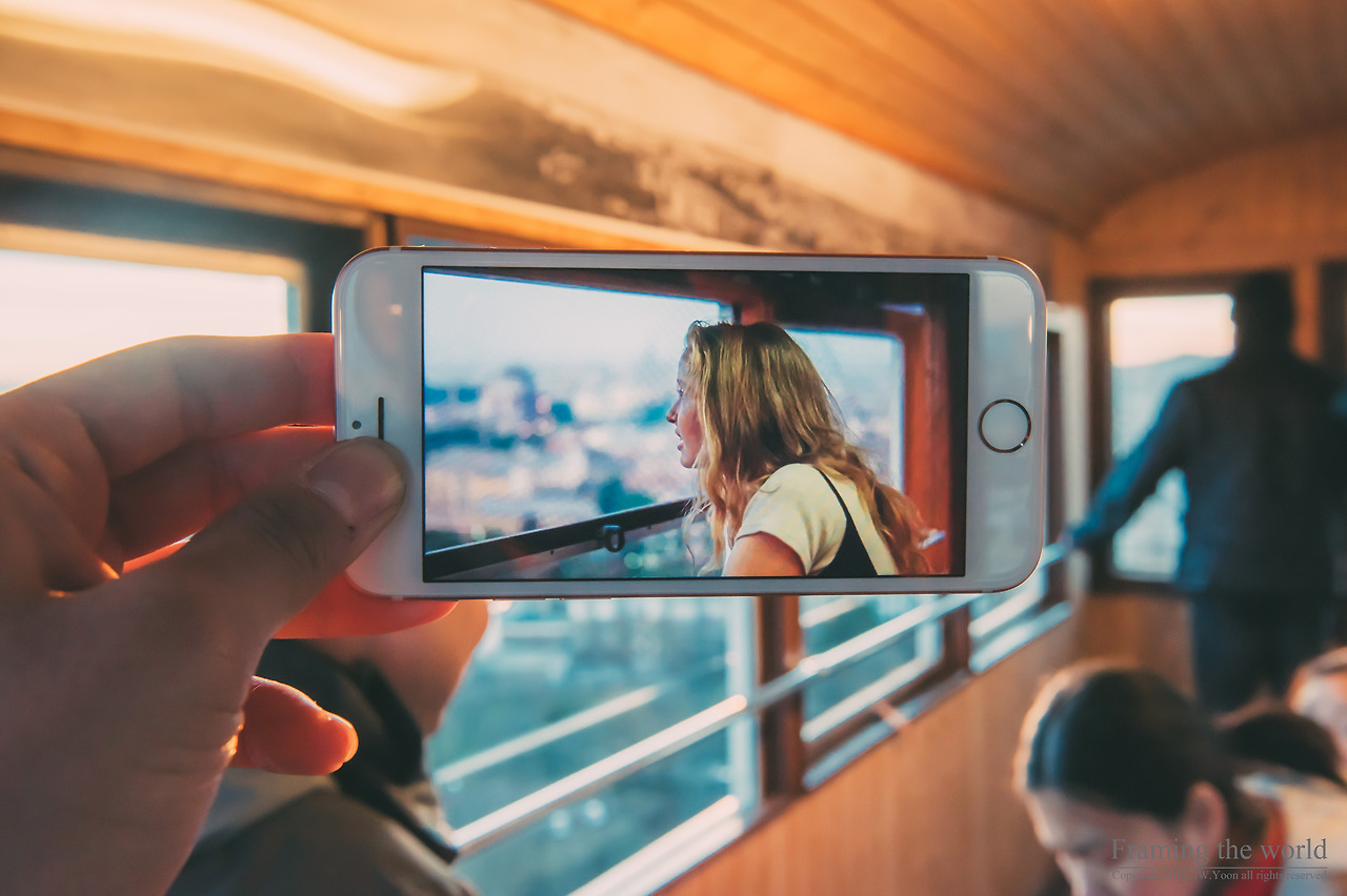 관람차 내부는 생각보다 넓었다. 한 번에 여덟 명 정도의 인원이 함께 탈 수 있었는데, 가족단위의 손님과 커플들이 가장 많았다. 나는 커플과 가족 사이에서 혼자 사진을 찍었다. 함께 탄 중국인 가족들이 신기한 눈빛으로 쳐다봤다. 하긴, 동양인 남자가 핸드폰을 들고 커다란 사진기로 계속 사진을 찍고 있다면 누구라도 쳐다볼 수밖에.