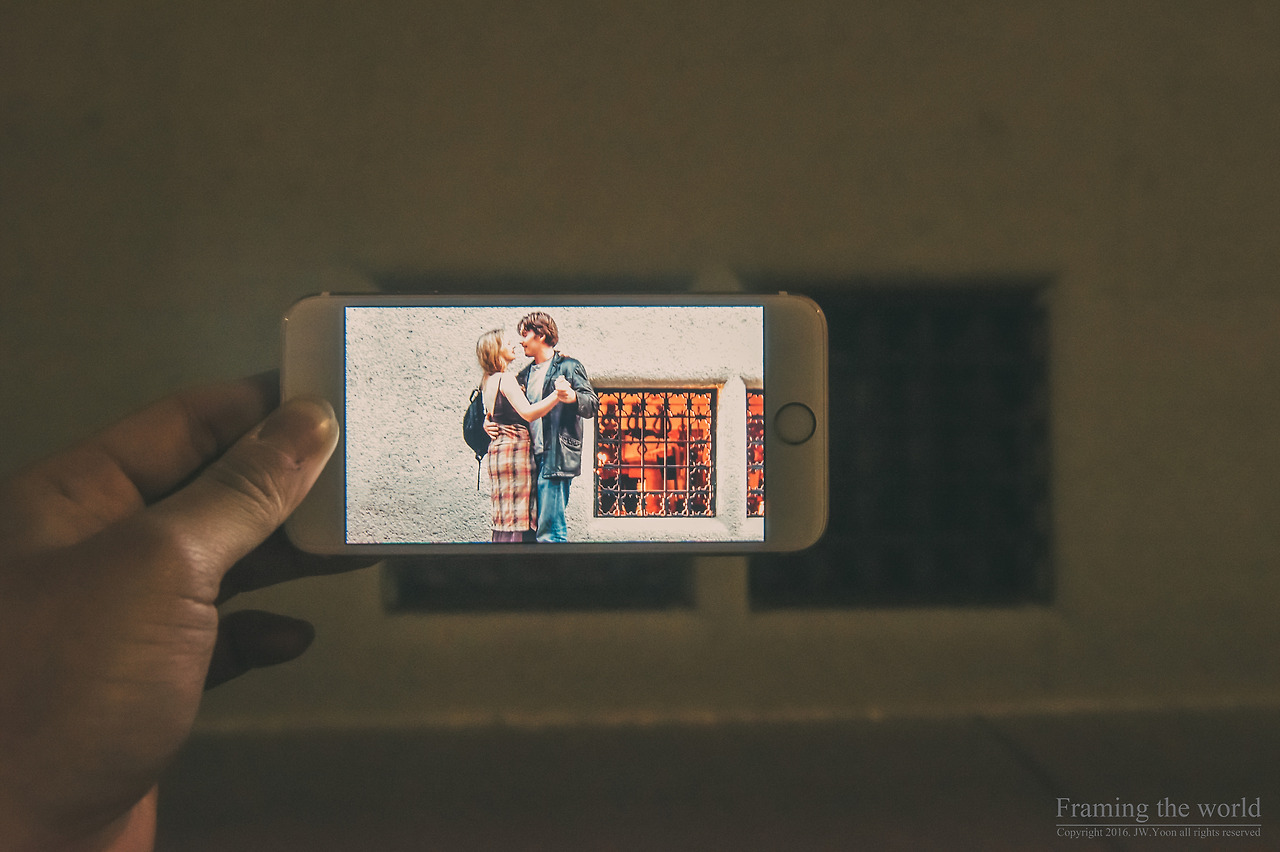 제시와 셀린느는 이 곳에서 친구에게 전화하는 시늉을 하며 장난을 친다. Ring Ring~하며 천연덕스럽게 서로에게 흠뻑 빠졌음을 상대 앞에서 말하는 두 연인이라니. 저 카페에 홀로 들어갔다면 아마 외로움에 몸서리치지 않았을까.