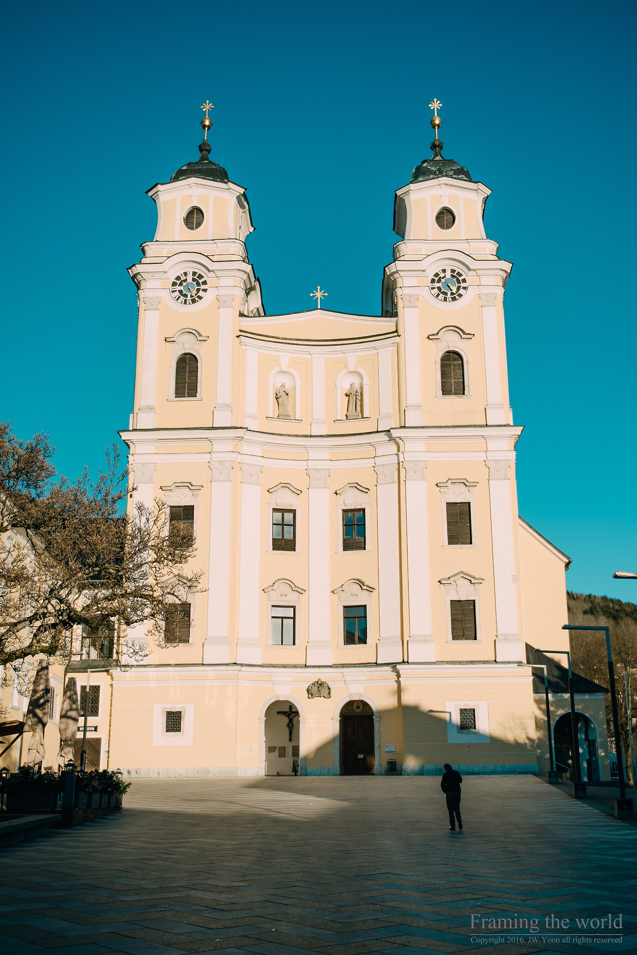 아름다운 장크트 길겐과 몬트제 호수를 넋 놓고 바라보며 한참을 달려 도착한 곳은 몬트제 마을의 성 미하엘 성당이었다. 이곳은 바로 폰 트랩 대령과 마리아의 결혼식 장면이 촬영됐던 곳이다. 지어진지 얼마 되지 않은 듯 한 깔끔한 모습이 인상적인 성당이었으나, 이곳은 18세기에 바로크 양식으로 전면 보수를 한 성당이라고 했다. 유럽의 오래된 성당들 중 보존 상태가 이렇게 깔끔한 경우는 거의 처음이었다. 영화에서는 이 곳에서 결혼식을 올리는 것으로 나오지만 실제 마리아와 폰 트랩 대령은 이 전에 봤던 논베르크 수녀원에서 결혼식을 올렸다고 한다.