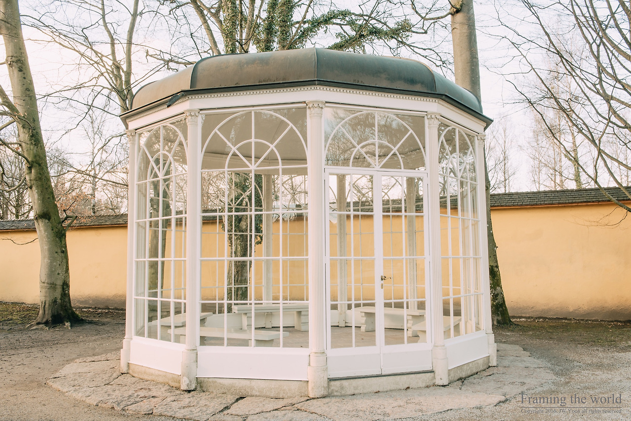 헬브룬 궁에서 가장 유명한 장소는 바로 가제보(Gazebo)라 불리는 이 유리 누각이다. 가제보는 우리나라로 치면 팔각정 같은 느낌의 단어다. 라틴어의 gaze(보다)와 ebo(미래형 접미사)의 합성어인 가제보는 서양에선 전망 좋은 곳에 설치해둔 정자 같은 역할을 하는 구조물인데, 요즘은 정원에 설치해두고 결혼식 등의 행사를 올릴 때 쓰이는 듯하다. 영화를 본 이들이라면 한눈에 알아볼 이 가제보는 랄프와 리즐이 "Sixteen going on seventeen"을 부르다 키스를 한 곳이자, 폰 트랩 대령과 마리아가 마침내 서로의 마음을 확인하기도 한 장소다. 그야말로 이 영화에서 나온 모든 장소들 중에 가장 로맨틱한 장소이자, 남녀가 사랑을 확인하던 가장 상징적인 장소였던 것.