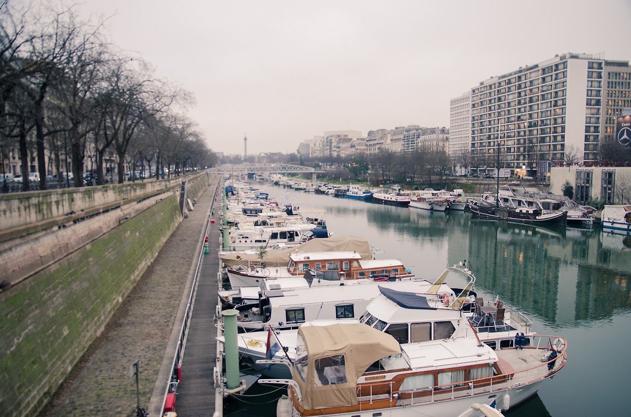마레지구에서 일행들과 헤어진 나는 직선으로 길게 뻗은 거리를 따라 걸었다. 목적지는 바토무슈 선착장이었다. 이유는 단 하나, 해가 지고 난 뒤 가로등 불빛으로 반짝이던 센느강을, 유람선에 탄 채로 보고 싶어서였다. 유럽의 겨울 해는 여섯 시를 전후로 자취를 감췄기 때문에, 천천히 걸어서 가다 보면 해가 저무는 시간에 맞춰 배를 탈 수 있을 것 같았다. 그렇게 해가 질 때까지 내가 할 수 있는 일이란 그저 걷는 일뿐이었다. 점점 더 뻐근해지는 발목을 이끌고 천천히, 아주 천천히 거리를 걸어내려 갔다. 바스티유 광장을 지나니 Port de l'Arsenal(아스날 운하)라는 곳이 나왔다.