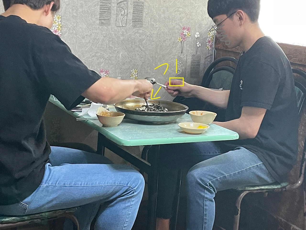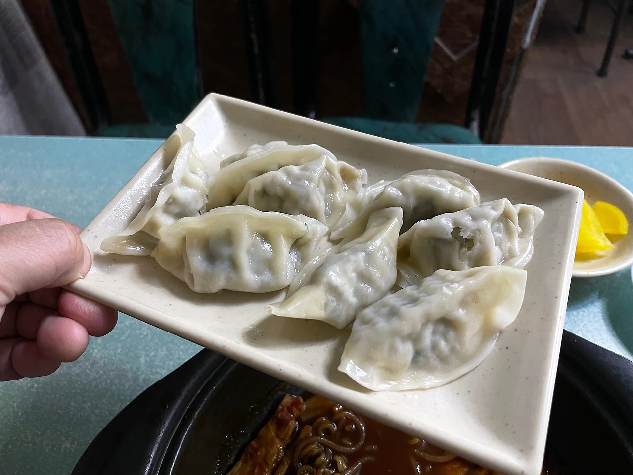별 기대 안하고 시킨 만두는 생각했던 그대로였다. 그래도 전자렌지에 그냥 돌리지 않고 찜통에 쪄서 그런지 촉촉하게 잘 삶아졌다. 심심한 간장에 찍어먹으면 굿굿. 몇 개 먹다 김밥과 만두를 떡볶이 국물에 찍어 단무지와 함께 먹어도 좋다. 아, 옆 테이블에서 공깃밥을 시켜 떡볶이 국물에 부은걸 보니 공깃밥 그릇 바닥에 김가루가 잔뜩 깔려있더라.