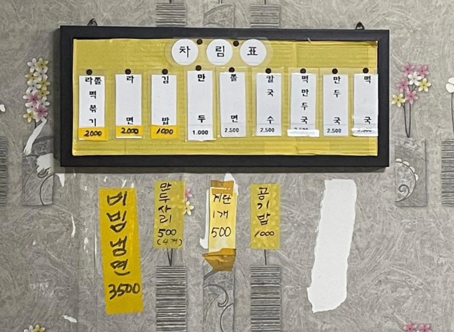 먹다가 문득 궁금증이 들어, 메뉴판에 있는 모든 메뉴를 다 더해봤다. 오… 없어진 떡만두국 제외하면 2만 500원이네… 저렴한 가격까지 암사 분식과 판박이다.