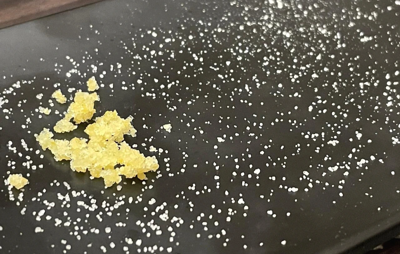 반드시 첫 입은 저 검은 접시에 있는 하얗고 초록 초록한 가루에 찍어 먹어야 한다. 저건 그냥 소금과 와사비 소금이다. 아따 고작 소금 플레이팅도 이리 예쁘게 하다니. 그냥 저 위에 턱 놔두면 알맞게 찍힌다. 와사비 소금은 살짝만.