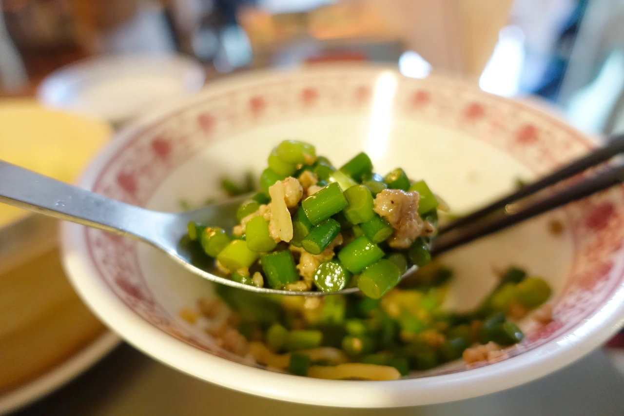 면은 보통 짜장면의 2/3쯤이어서 금세 바닥을 드러낸다. 마늘쫑과 고기가 꽤 많이 남았을 테니, 이때쯤 숟가락을 청해 남아있는 마늘쫑과 고기를 퍼서 먹어도 좋다. 이때 한 번쯤 게걸스럽게 씹어보자. 마늘쫑이 씹히며 나는 아삭한 식감이 기분이가 좋다.
