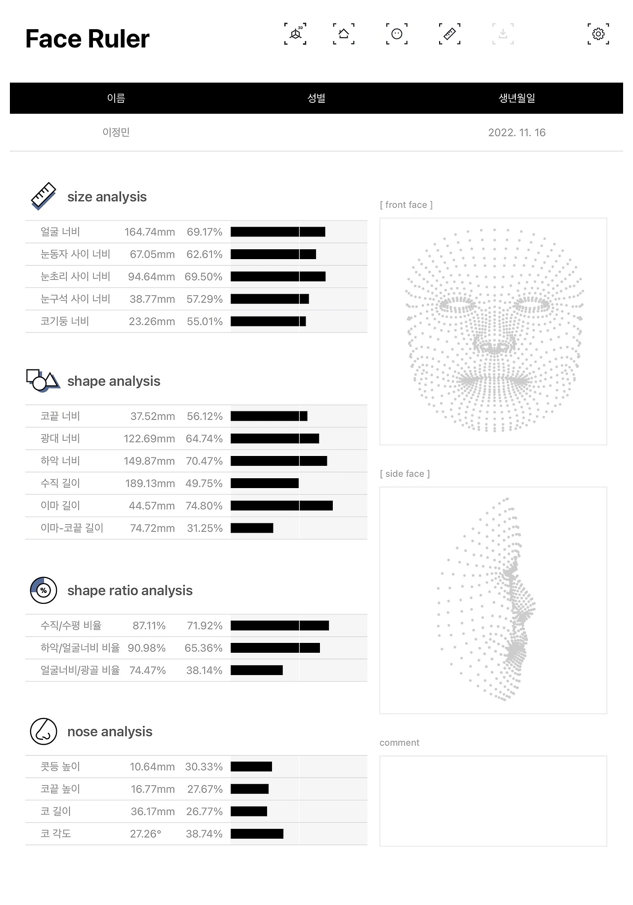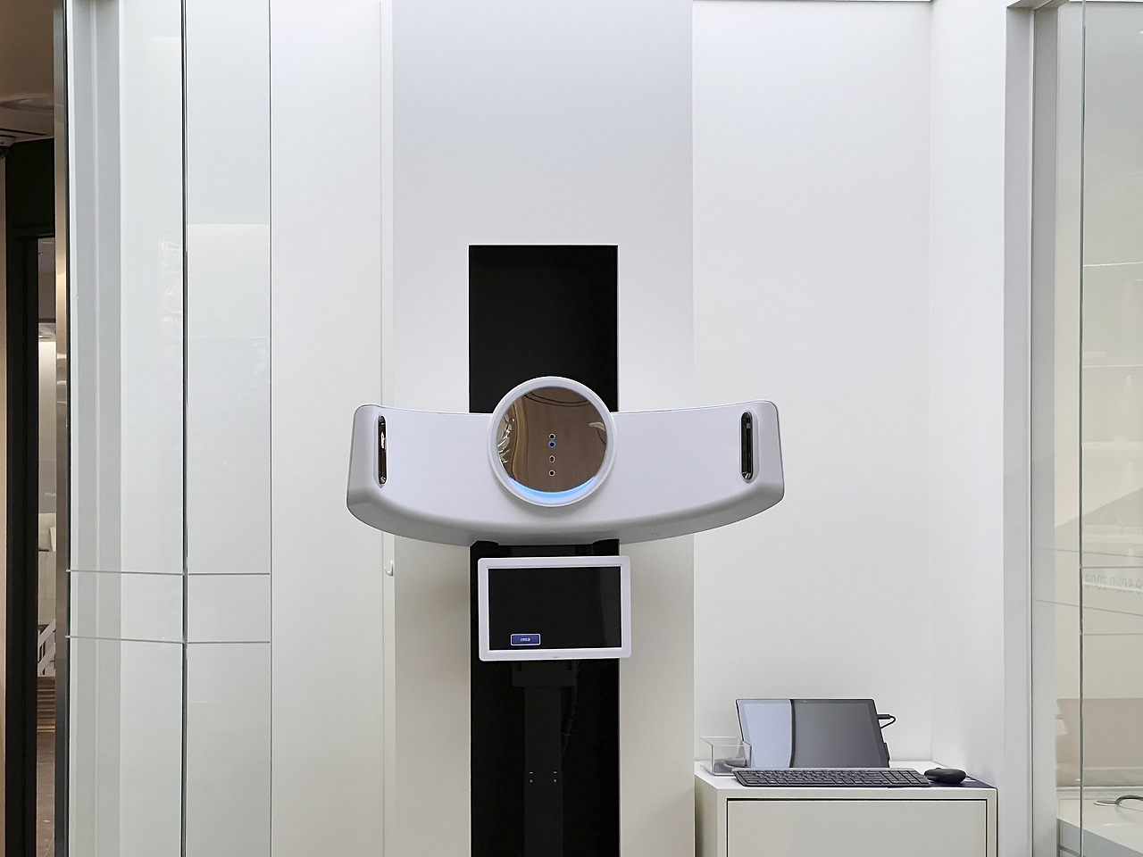상담은 서비스에 대한 설명을 들은 후 ‘Face Ruler’라는 정밀 기계를 이용해 내 얼굴을 정확히 스캔하는 것으로 시작합니다. 한 1~2분 이리저리 얼굴을 스캔하며 결과값을 보여주는 안경사. 참, 브리즘 상담은 모두 숙련된 안경사가 해주는 것 같아요. 조근조근 친절하게 제 얼굴 구조를 설명하고 테 샘플을 보여주십니다.