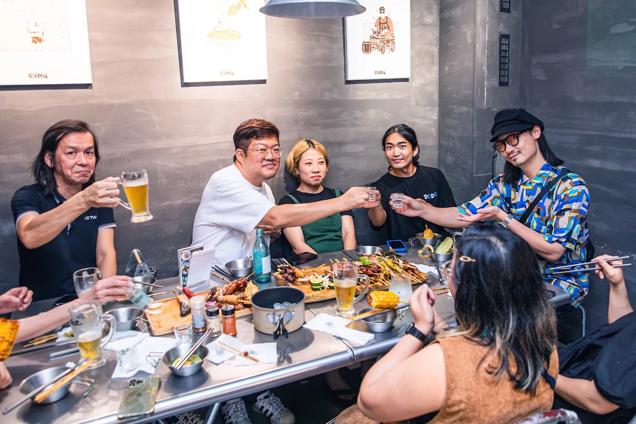 이곳을 헤치고 간 우리의 목적지는 ‘路边 烤肉 The Wild BBQ’였습니다. 타이베이 사람들에게 유명한 집인가 본데, 외국인과 타이완 현지인들의 리뷰는 꽤 있더라고요. 이미 트렌디 타이베이 측에서 가게를 통으로 대여해 놓아 메뉴를 보거나 할 필요도 없었어요.