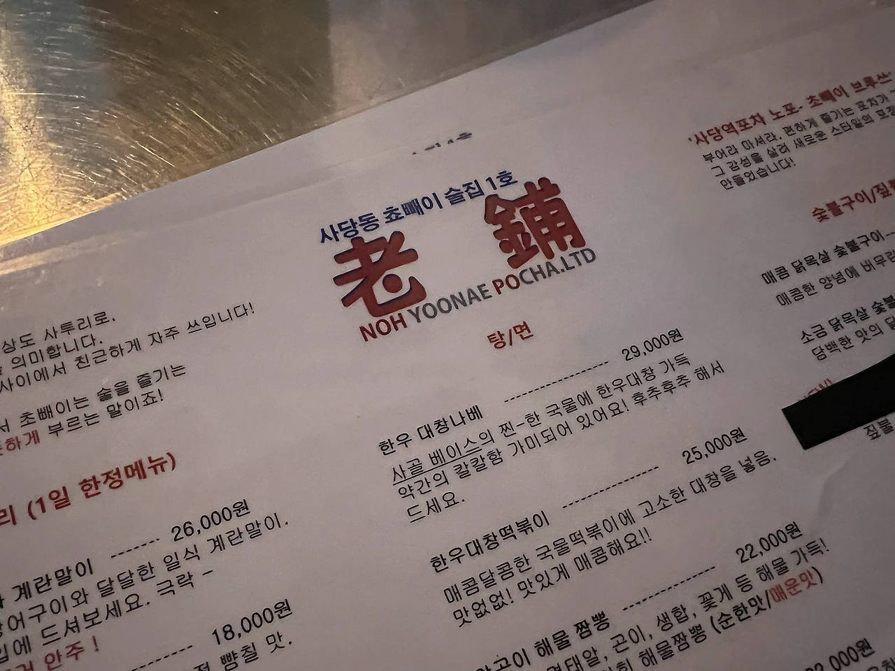 어쨌건 나는 이곳을 내 마음속의 ‘사당역 노포 1호’로 남겨두기로 했다. 언젠가 또 약속이 생긴다면, 그때 다시 찾아와 천천히 잔을 기울이고 싶다.