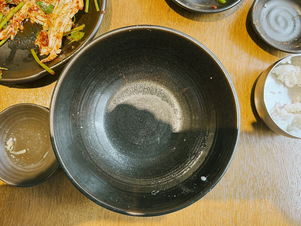 바닥에 남은 미지근한 뚝배기에