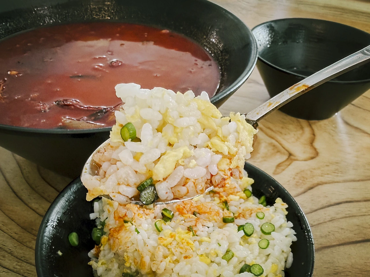 The soup was deeply spicy and satisfying. I wouldn’t have minded a bit more bok choy or greens, but honestly, it worked just fine as it was. I started with a spoonful of the fried rice. Since it’s meant for jjamppong, the seasoning is intentionally mild—but one bite and you get a full hit of fire and scallion oil aroma.